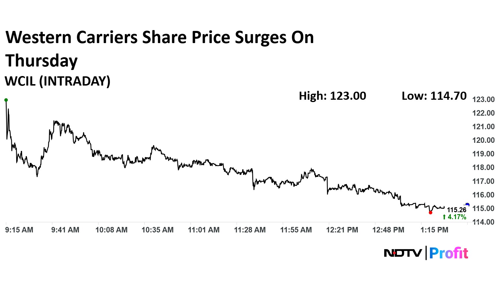 The scrip rose as much as 11.16% to Rs 123 apiece, the highest level since Jan. 6, 2025. It pared gains to trade 4.12% higher at Rs 115.36 apiece, as of 1:41 p.m. This compares to a 0.74% advance in the NSE Nifty 50.