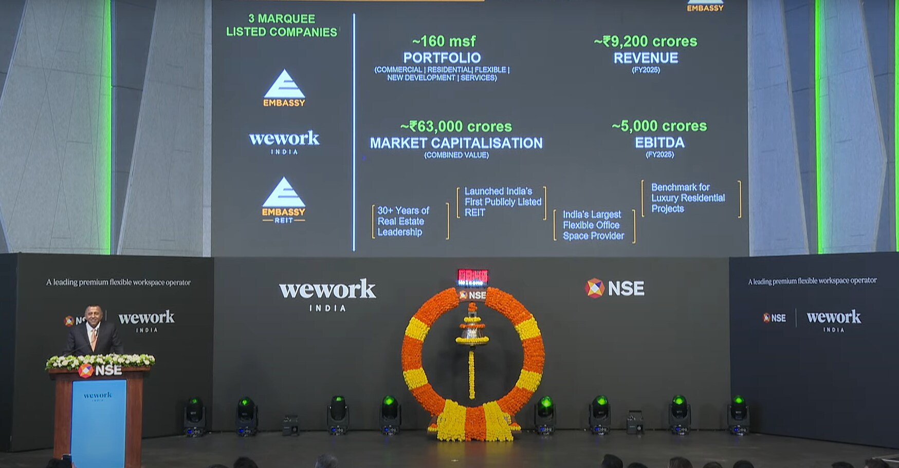 The IPO comprised only an offer-for-sale. Promoter Embassy Buildcon offloaded 3.5 crore shares for Rs 2,294 crore, and WeWork Global affiliate 1 Ariel Way Tenant Ltd. sold one crore shares for Rs 706 crore.