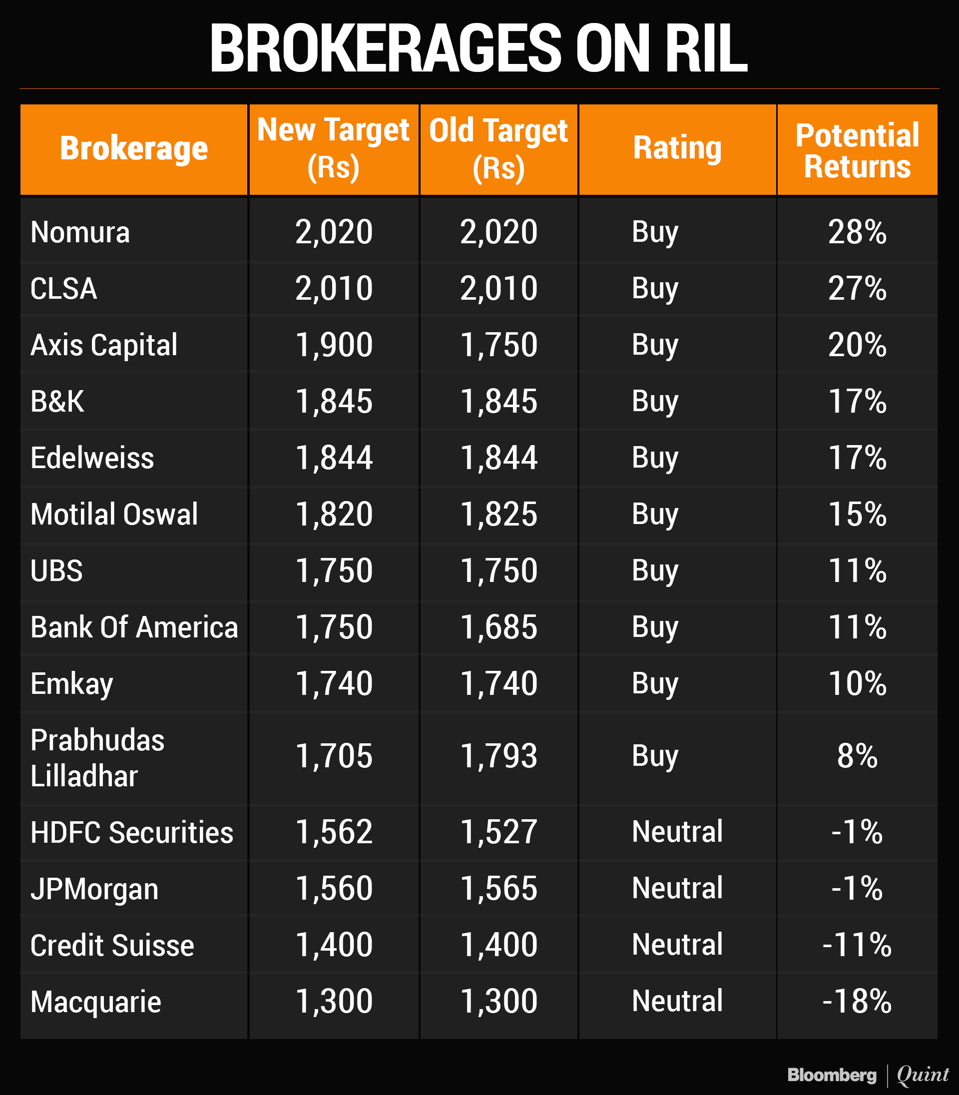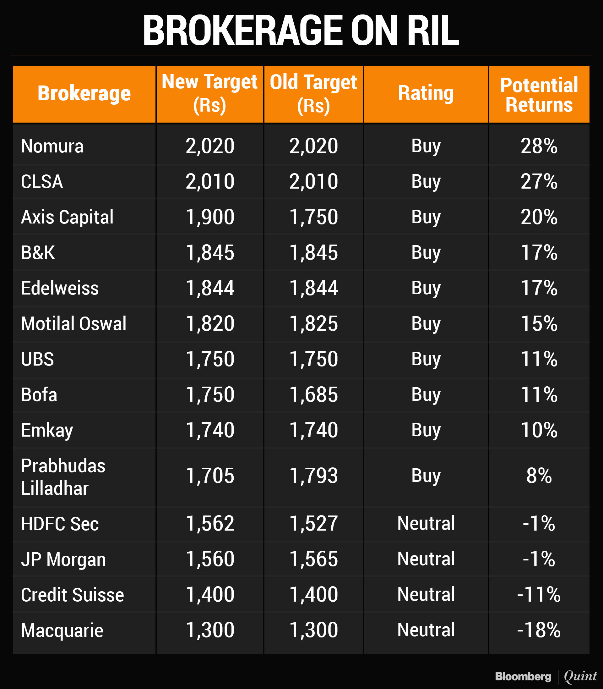 Most analysts retained their stance on Reliance Industries Ltd. on the back of a robust retail business even as its third-quarter operating profit fell the most in more than four years.