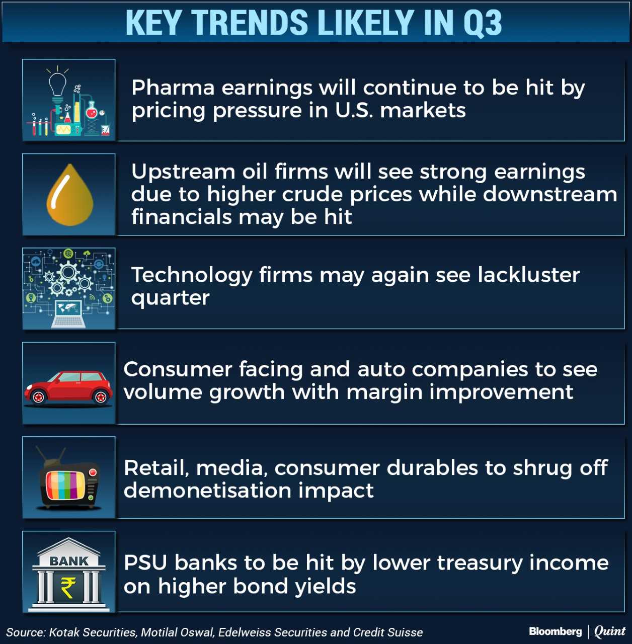 That's what brokerages expect in the earnings season for the third quarter. It kick-starts on Thursday with IndusInd Bank Ltd. and Tata Consultancy Services Ltd. reporting earnings, followed by Infosys Ltd. on Friday. Brokerages estimate the Nifty 50 profit will rise around 15-20 percent over the year-ago period when demonetisation had hurt the economy.