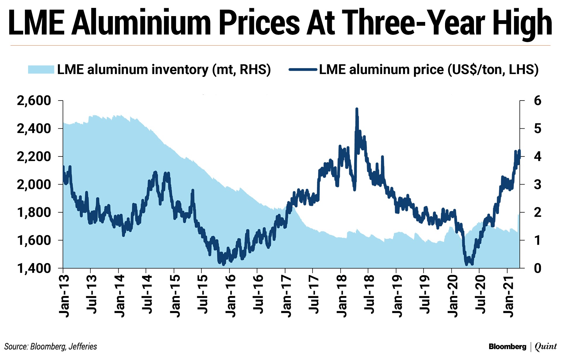 “Asian hot-rolled coil (flat) steel prices softened ahead of the Chinese New Year but have strengthened again since mid-February, and are up nearly 10%, after rising close to 40% in 2020. European steel prices have rallied even harder, up 26%,” the research firm said in a report. “Steel prices in China and Europe are now at the highest in a decade. LME aluminium price has also risen 13% since mid-Feb and is now at a three-year high.”