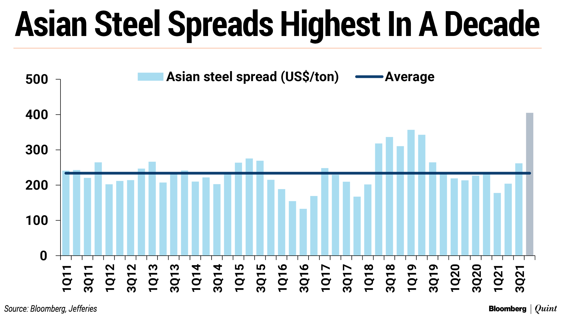 Jefferies listed Tata Steel Ltd. and Hindalco Industries Ltd. as top picks in the metals segment despite their recent outperformance. “Both stocks have almost doubled since end-September, outperforming the Nifty by 60-70%. However, valuations at 1x FY22 estimated price-to-book still offer room for upside.” The research firm raised its price targets on JSW Steel Ltd. and Tata Steel and maintained its ‘hold' rating on Coal India Ltd.