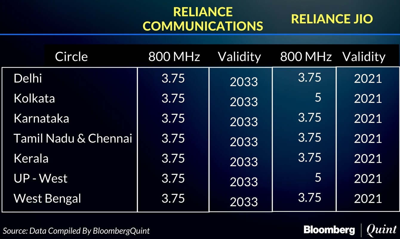 Mukesh Ambani's Reliance Jio Infocomm Ltd. currently has the rights to use the spectrum owned by his younger brother's company as per an earlier agreement. Now that it's on the block, Reliance Jio could be interested in the 800 MHz band which has a longer validity until 2033.