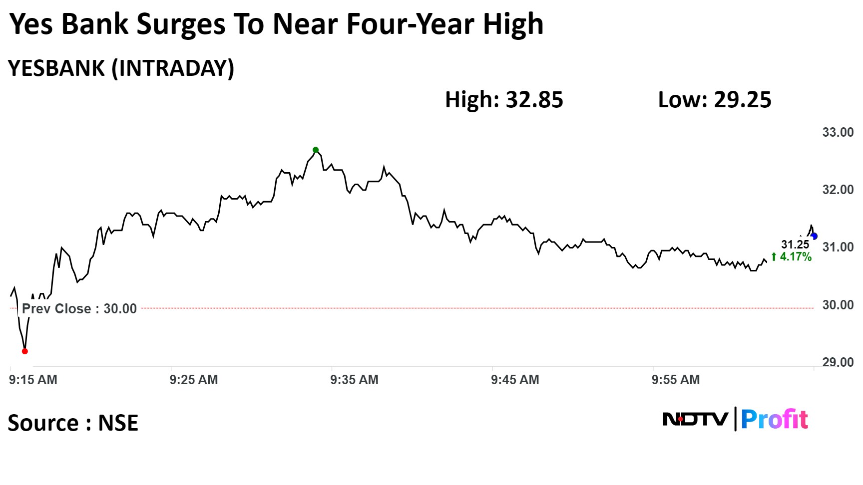 Shares of Yes Bank Ltd. surged over 9% to a near four-year high on Friday after the State Bank of India clarified that it is not divesting a stake in the private lender.