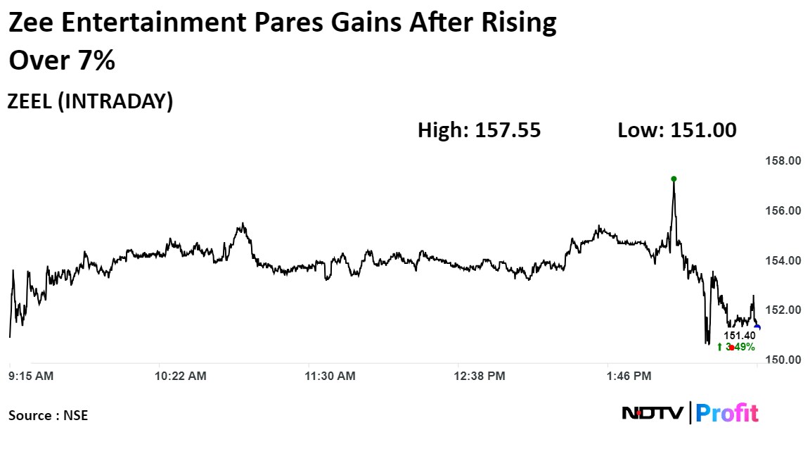 The scrip rose as much as 7.69% to Rs 157.55 apiece. It pared gains to trade 3.69% higher at Rs 151.70 apiece, as of 2:49 p.m. This compares with a 0.53% advance in the NSE Nifty 50.