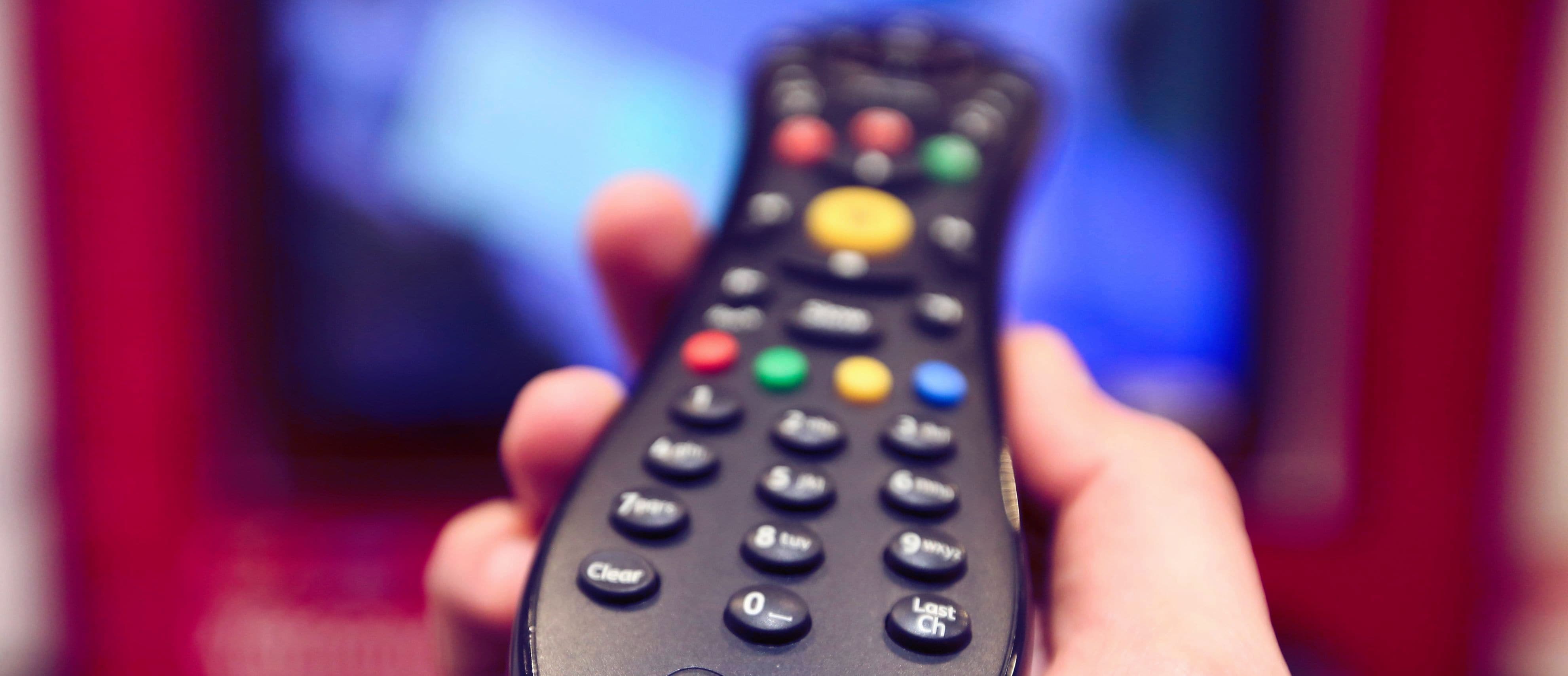A man holds a television remote control. (Photographer: Chris Ratcliffe/Bloomberg)