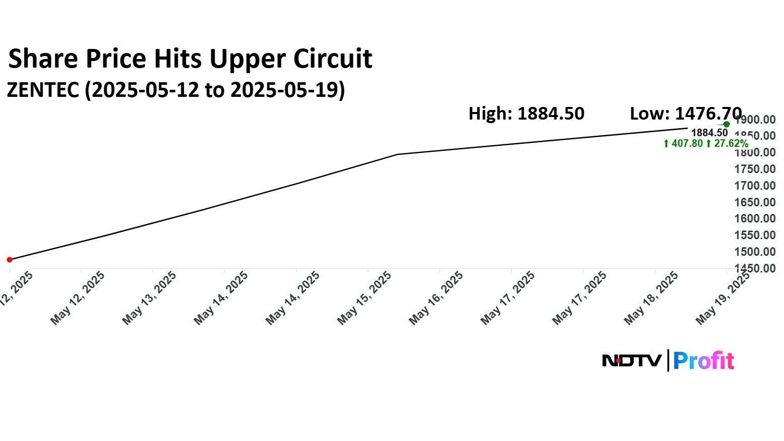 Zen Technologies Ltd.'s share price hit the upper circuit for the seventh consecutive trading session as it surged another 5% on Monday. The most recent surge comes on the back of strong Q4 results that the company posted on Sunday.