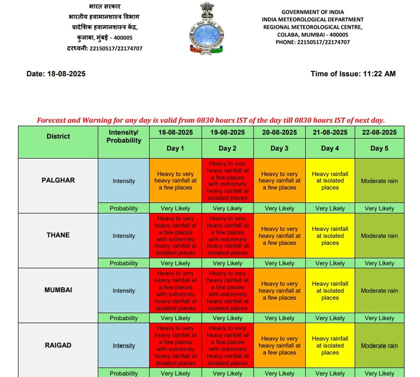 — Regional Meteorological Center,Mumbai (@RMC_Mumbai) August 18, 2025
