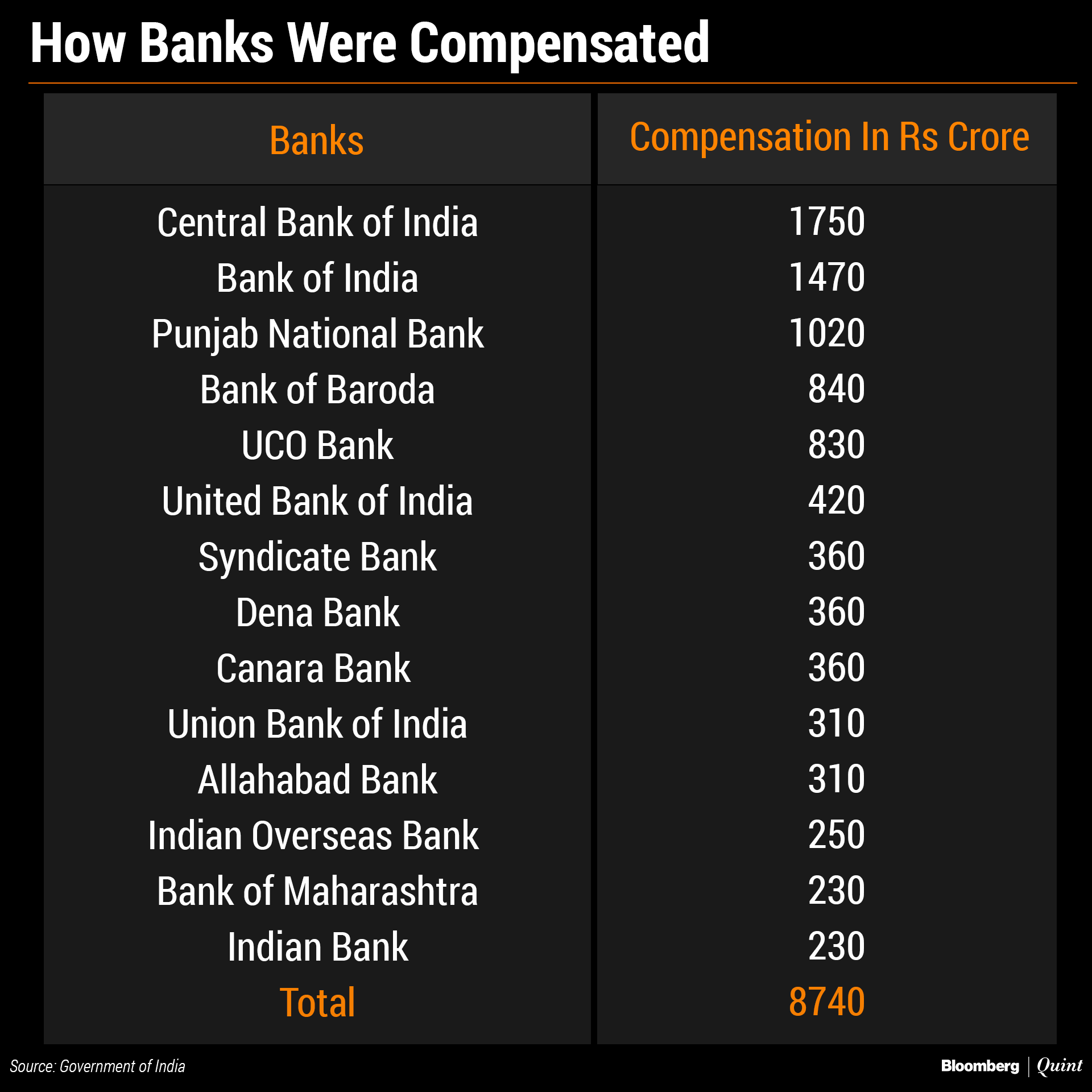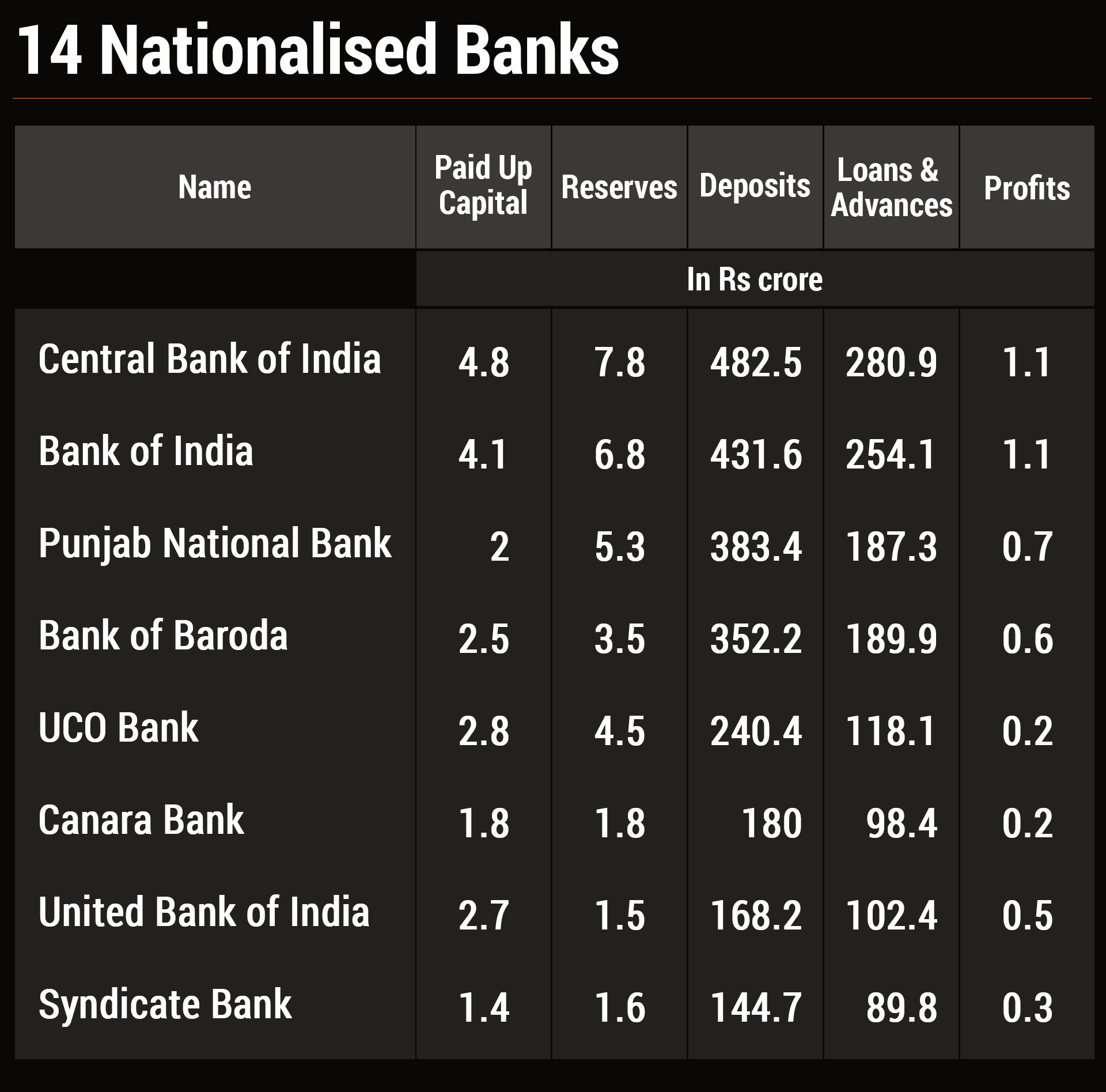 The compensation offered to the owners of these banks on nationalisation was in line with their size, with Central Bank of India's the highest, at Rs 1,750 crore.