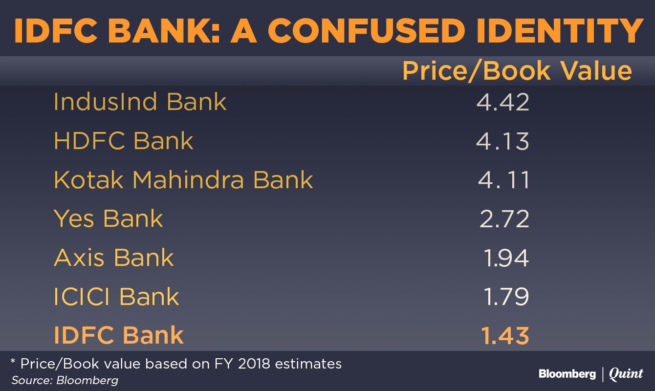 The short point here is that IDFC Bank is far from shedding its infrastructure lending past and morphing into a universal bank. A fact that is reflected in the valuation gap between IDFC Bank and its peers.