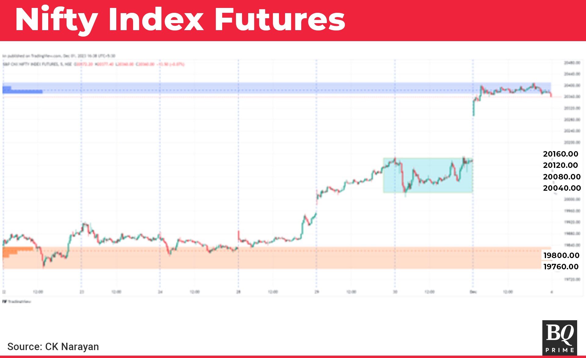 Owing to the swiftness of the rise in the last week, the nearest liquidity support zone is 19,760-19,800 area. So, traders would have to keep their stop beyond this. There is a small rectangle marked in the middle of the chart and this is a price consolidation area which also could function as a support during dips. This is around the 20,160–20,040 zone. All levels are futures. This can be the earliest area of support and, hence, a stop-loss point for active traders.