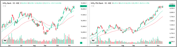 - PSU banks led gains with Bank of India up 18% monthly, outperforming larger names like SBI