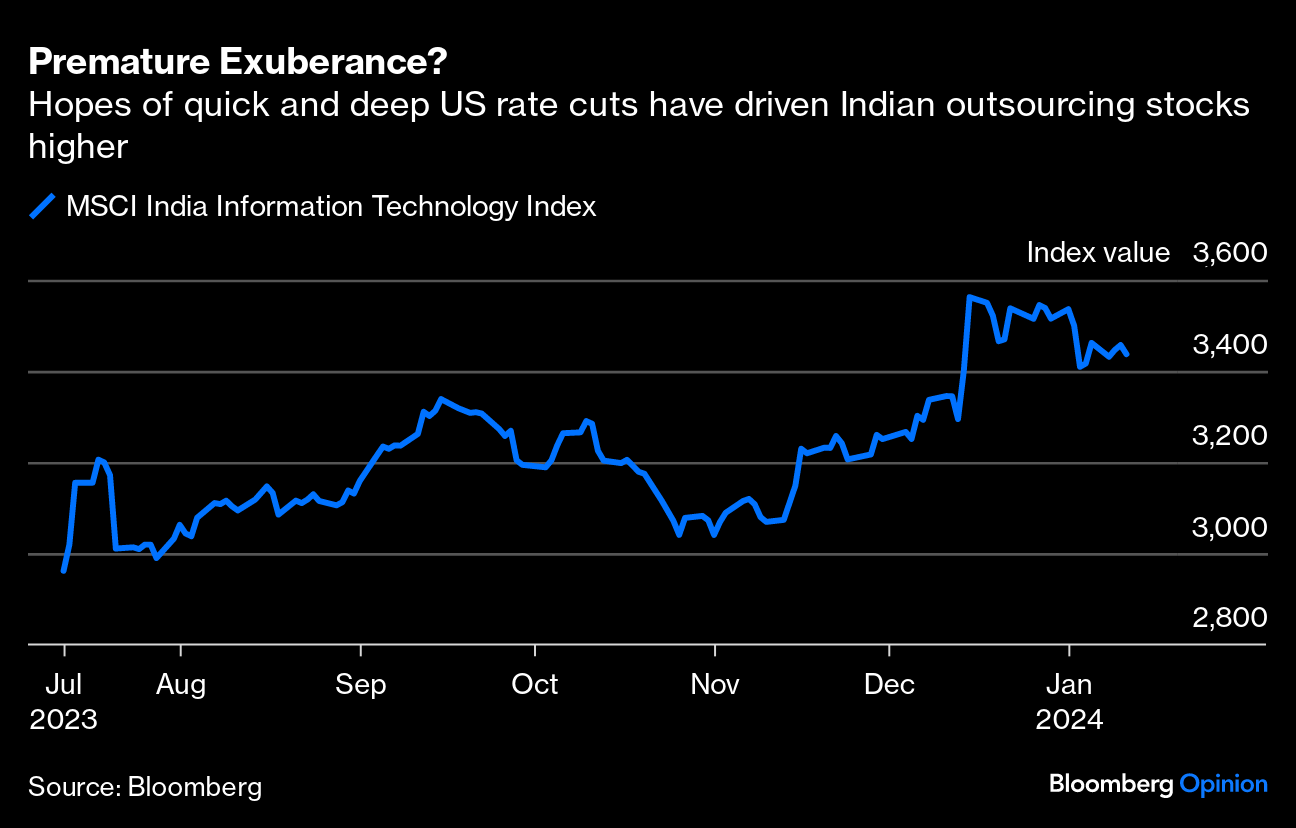 India's software industry is an odd place to look for trouble emanating from a prolonged campaign of higher US interest rates. These cash-rich firms have no debt refinancing to worry about. It's their lumpy order flows that make them vulnerable to cycles of client sentiment.
