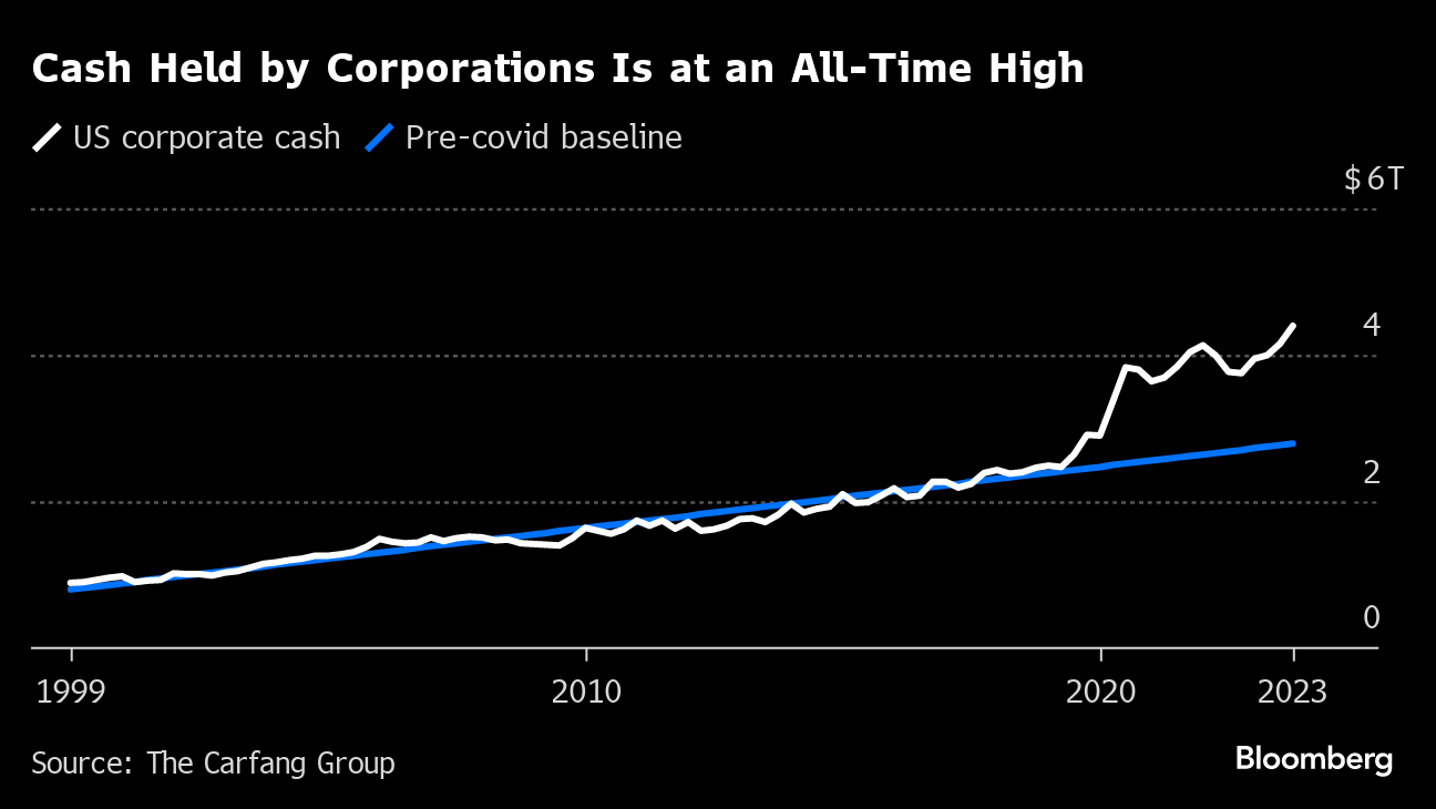 Add to that corporate executives who seem in little rush to spend money following the pandemic and depositors still worried about the state of the banking system, and all signs point to 2024 being another big year for cash.