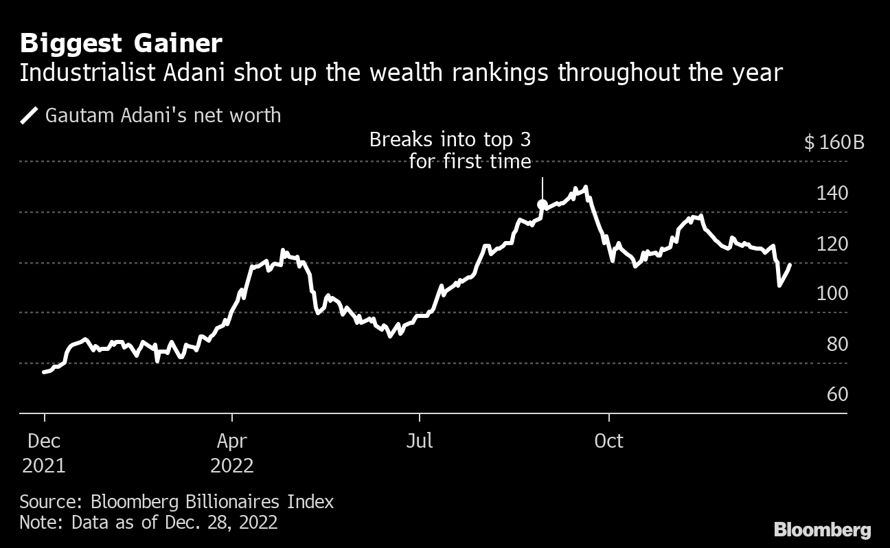 Coal tycoons sound like a relic of another era. But with the world roiled by the war in Ukraine, Adani, an Indian coal miner with a fast-expanding empire, surges past Gates and France's Bernard Arnault to become the world's third-richest person at the end of August. It marks the highest ranking ever for an Asian billionaire. Aligning himself with Indian Prime Minister Narendra Modi, Adani has used debt to rapidly diversify his relatively opaque conglomerate, Adani Group, into ports, data centers, highways and controversially, green energy. In September, he briefly passed Bezos to become the world's second-richest person.