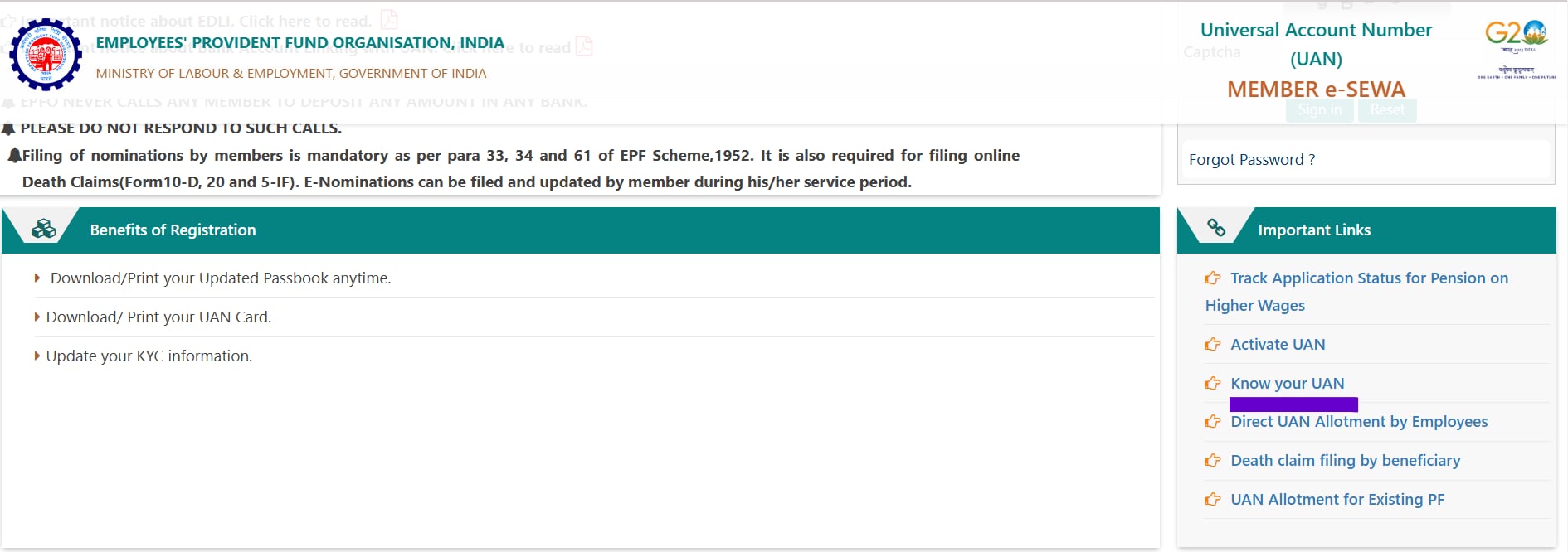 Step 3: On the member portal homepage, look for the "Important Links" section and click on "Know Your UAN."
