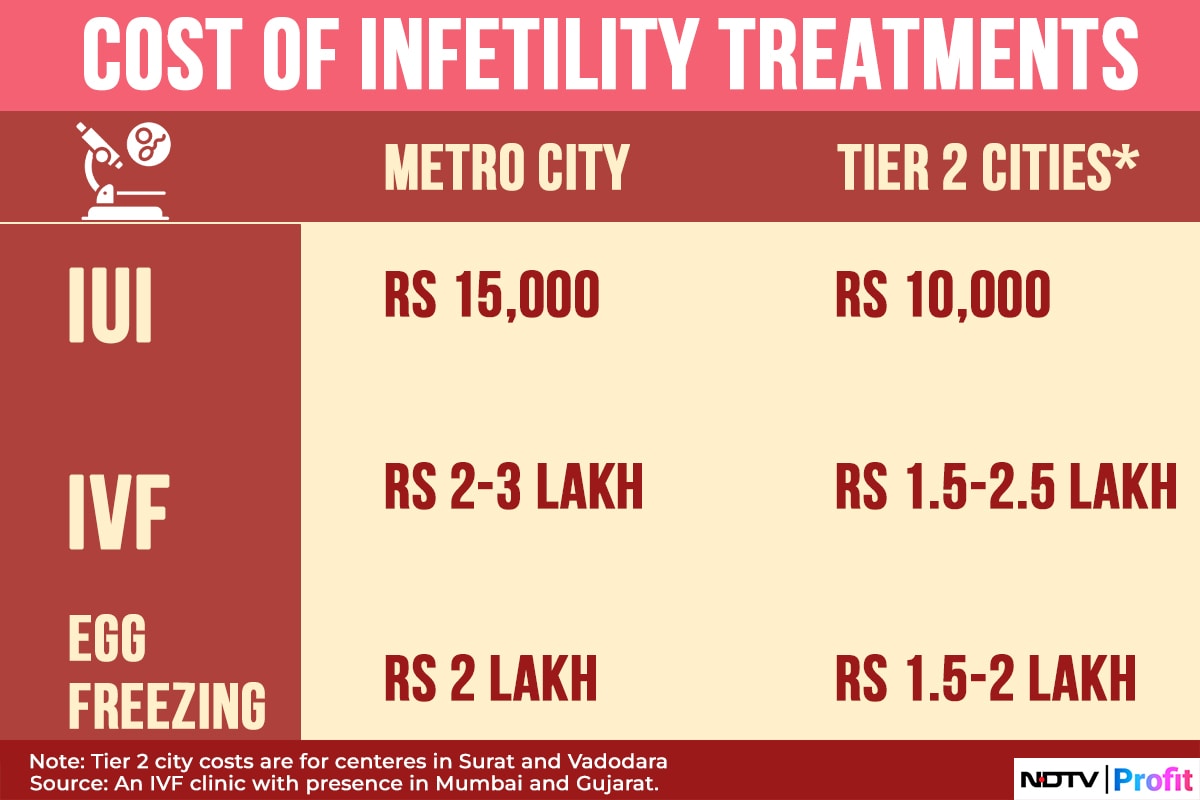 Six women that NDTV Profit spoke to revealed that they have spent between Rs 1 lakh to Rs 5 lakh on their pregnancies, which involved IVF treatments. For some, the treatment is still underway. They requested anonymity for the sake of their privacy. Of this, up to Rs 1-2 lakh was spent on the IVF treatment itself. For some, even more.