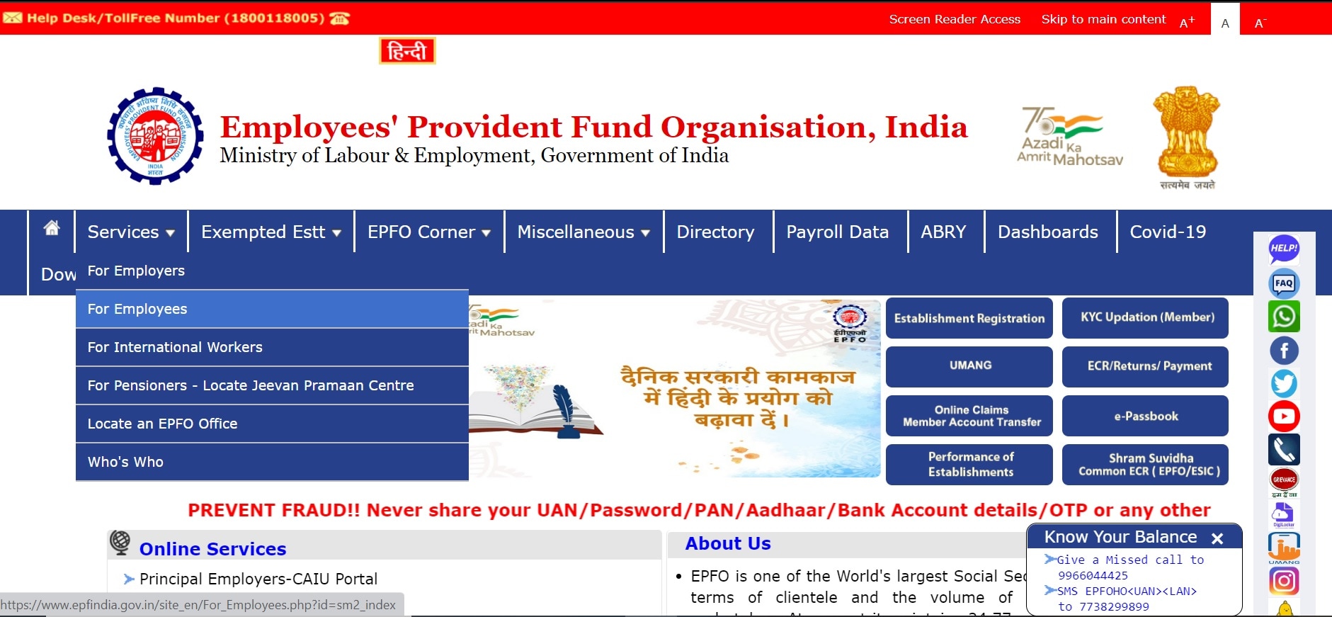 Once your employer activates your UAN number, you can follow these steps to check your PF balance online: