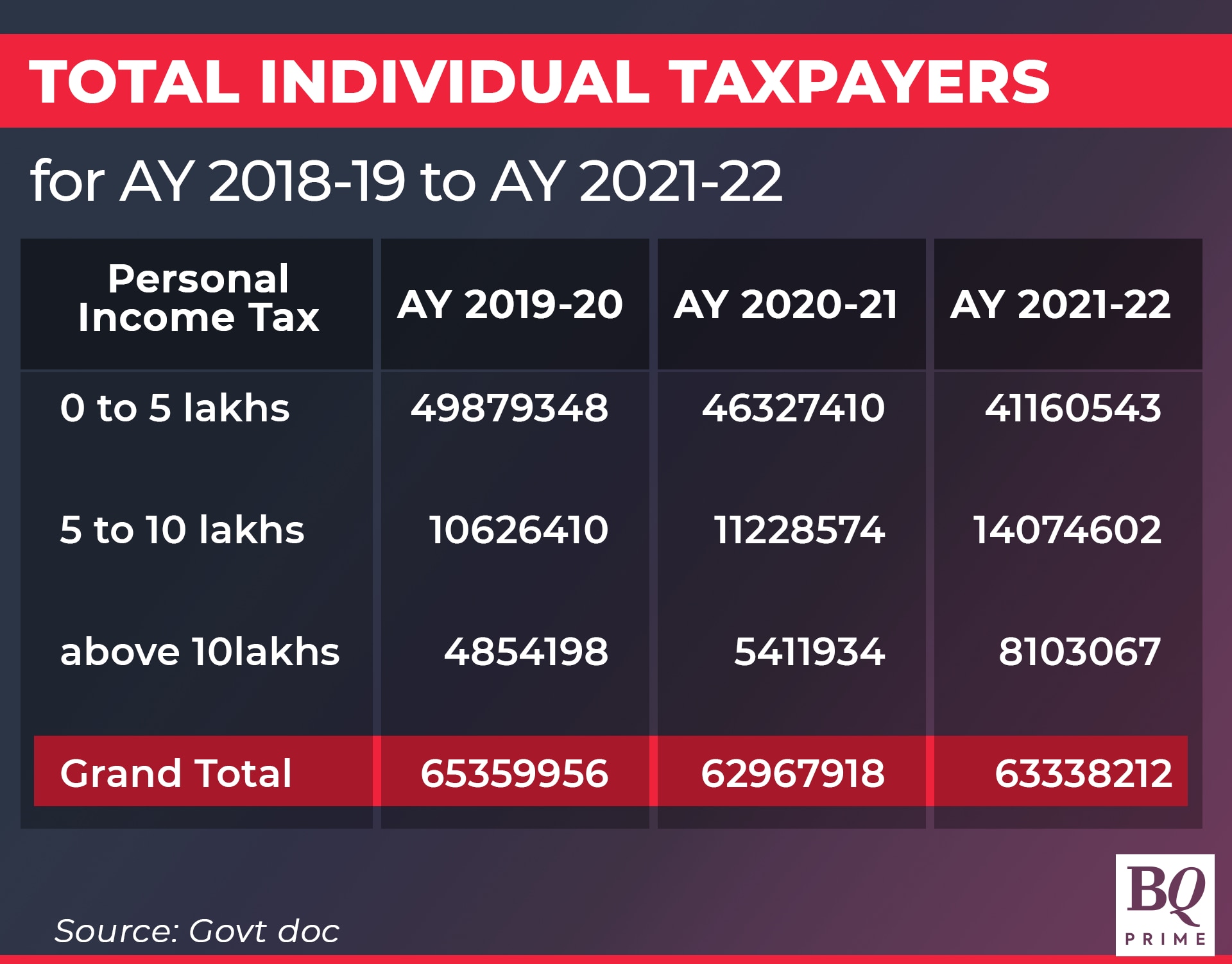 There has been a significant increase in the number of taxpayers earning more than Rs 5 lakh, while the count of those falling in the lowest income slab of Rs 0 to 5 lakh has fallen.