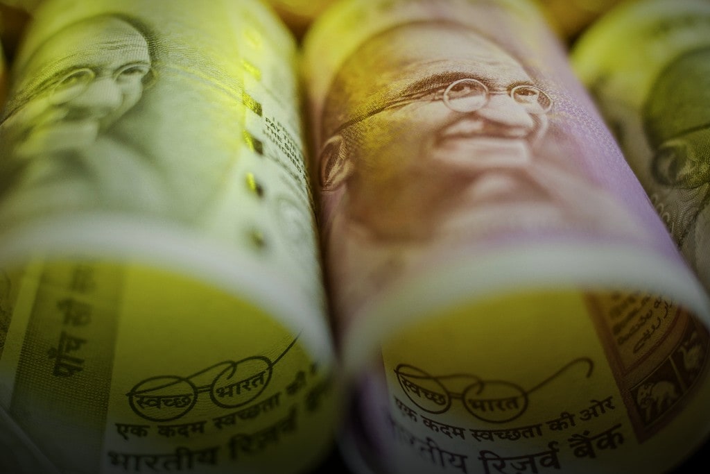 Indian five hundred rupee banknotes are arranged for a photograph in Mumbai, India. (Photographer: Dhiraj Singh/Bloomberg)