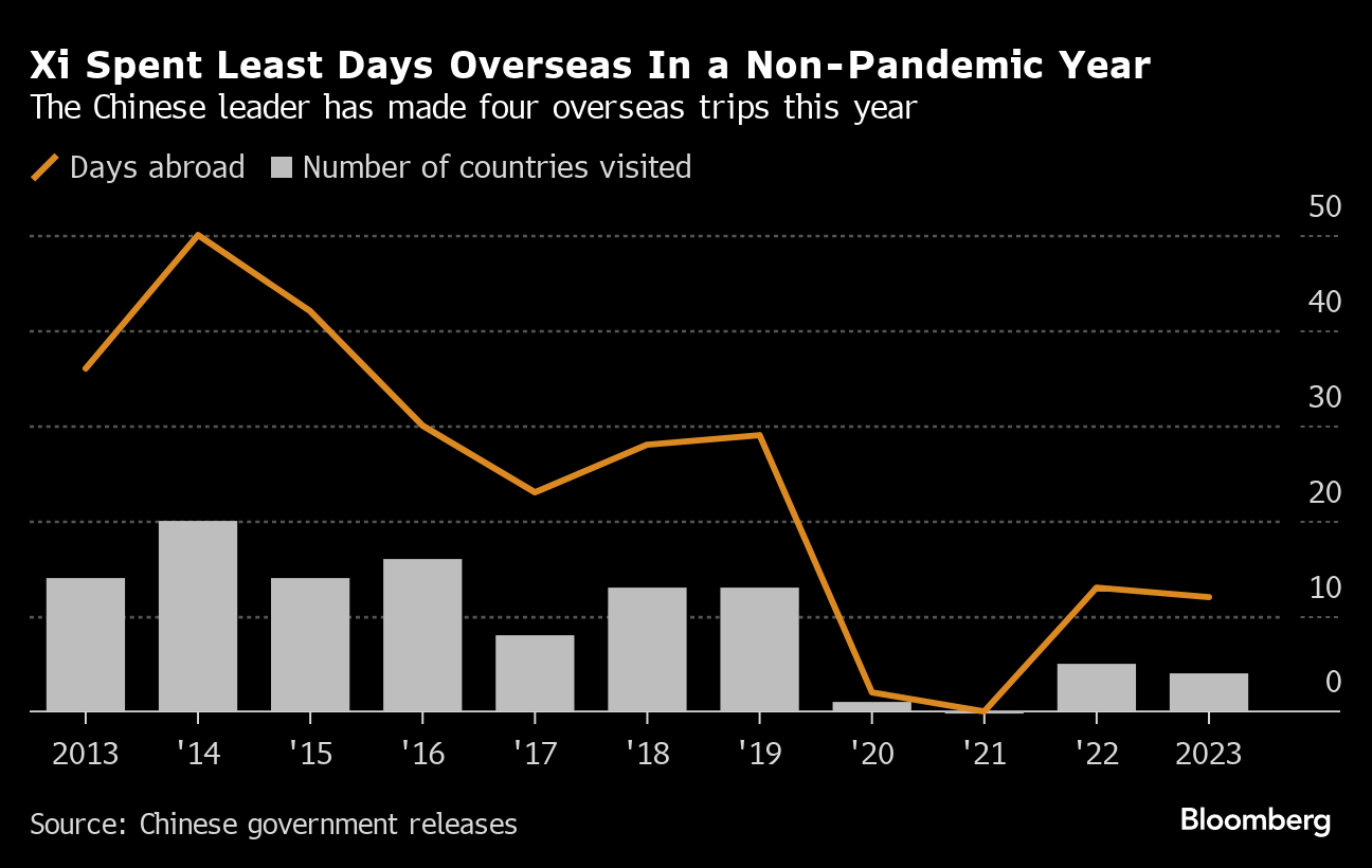 There's been a shift in how Xi conducts diplomatic engagement. He cut back on international travel last year, spending just 12 days outside of China visiting four nations, the lowest for a non-pandemic year since he came to power.