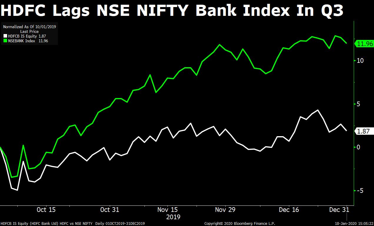 Shares of HDFC Bank have gained 7.41 percent in the three months to December compared with a 9 percent rise in the benchmark Nifty Bank Index during the period.