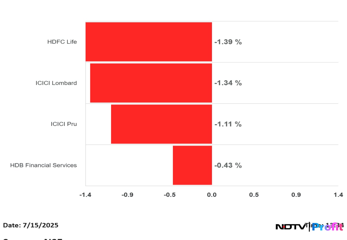 Shares of HDFC Life, ICICI Prudential Life, ICICI Lombard GIC and HDB Financial Services are trading lower ahead of their Q1 earnings.