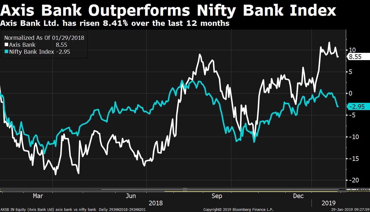 Shares of Axis Bank rose 1.99 percent before the results announcement. That compares with a 0.09 percent decline in the NSE Nifty 50 Index. The stock has risen 8.41 percent over the last 12 months compared with a 3.10 percent fall in the NSE Nifty Bank Index. The bank was the second-largest gainer on the index.