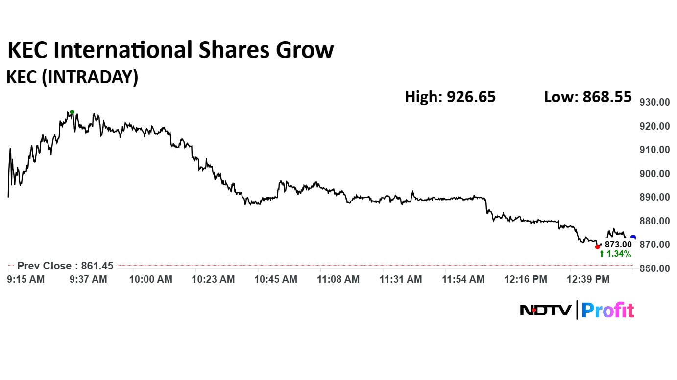 Share price of KEC International Ltd. rose as much as 7.57% through the day to Rs 926.65 apiece, after the company's Q4 profit grew 76.8% to Rs 268.2 crore from Rs 151.7 crore.