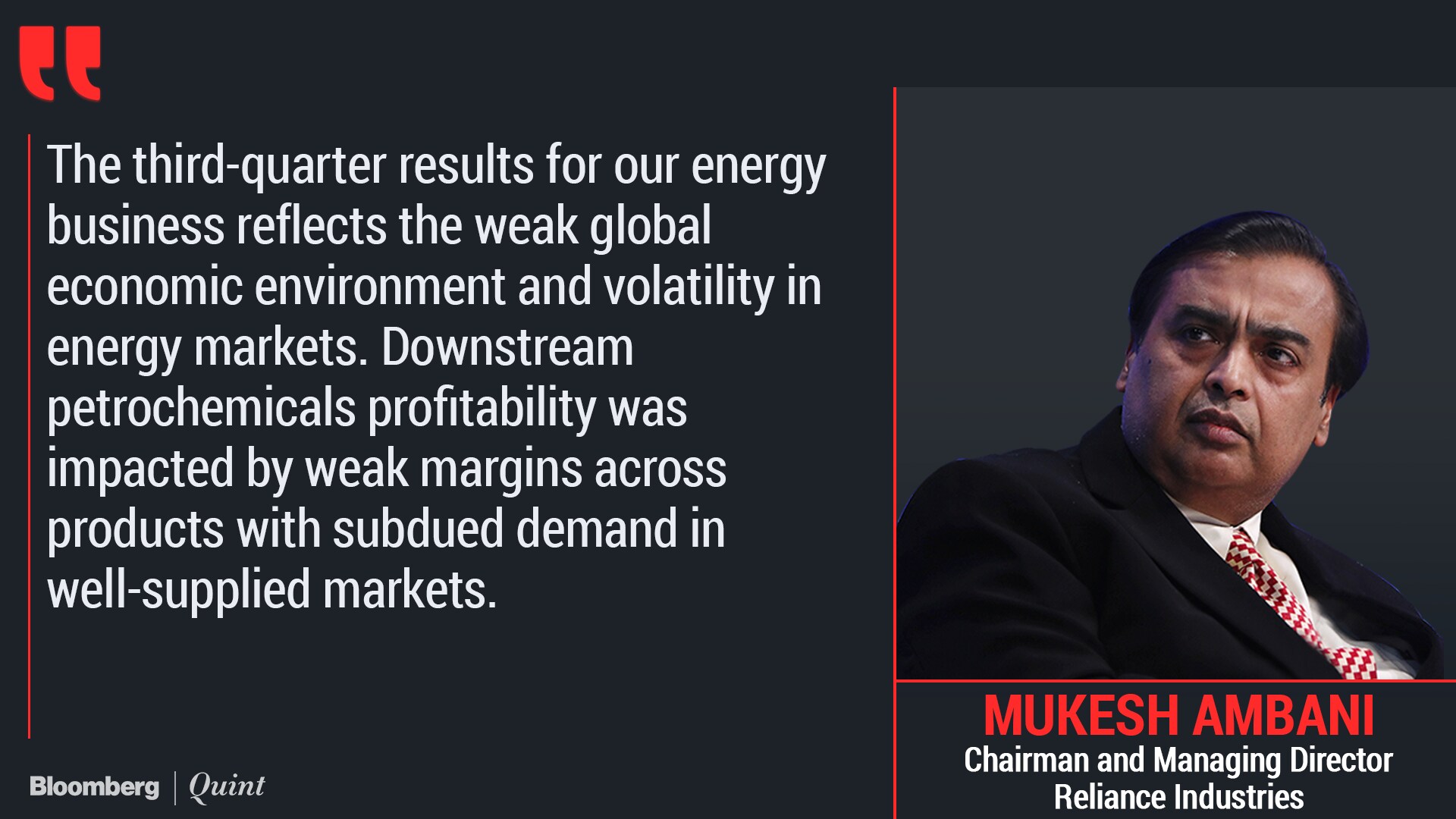 The oil-to-telecom conglomerate faced pressure in its legacy refining and petrochemicals businesses due to a global supply glut, leaving the newer telecom and retail units to offset that impact. While that plays into billionaire Mukesh Ambani's long-term plan of having his consumer business contribute half of RIL's revenue, it does not bode well in the short term where refining and petrochemicals still make up almost 60 percent of its operating income.