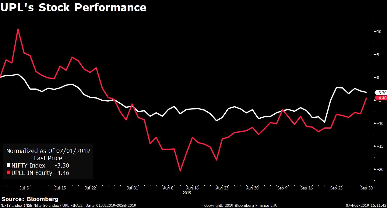 Shares of UPL fell as much as 3.9 percent after the earnings announcement compared to the NSE Nifty 50's 0.39 percent gain.