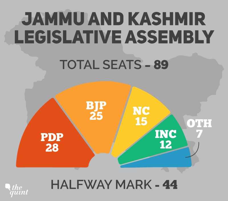 The BJP won 25 seats and the PDP 28 in the 87-member assembly and came together in alliance, two months after the December 2014 elections. The NC has 15 seats, the Congress 12 and others seven.