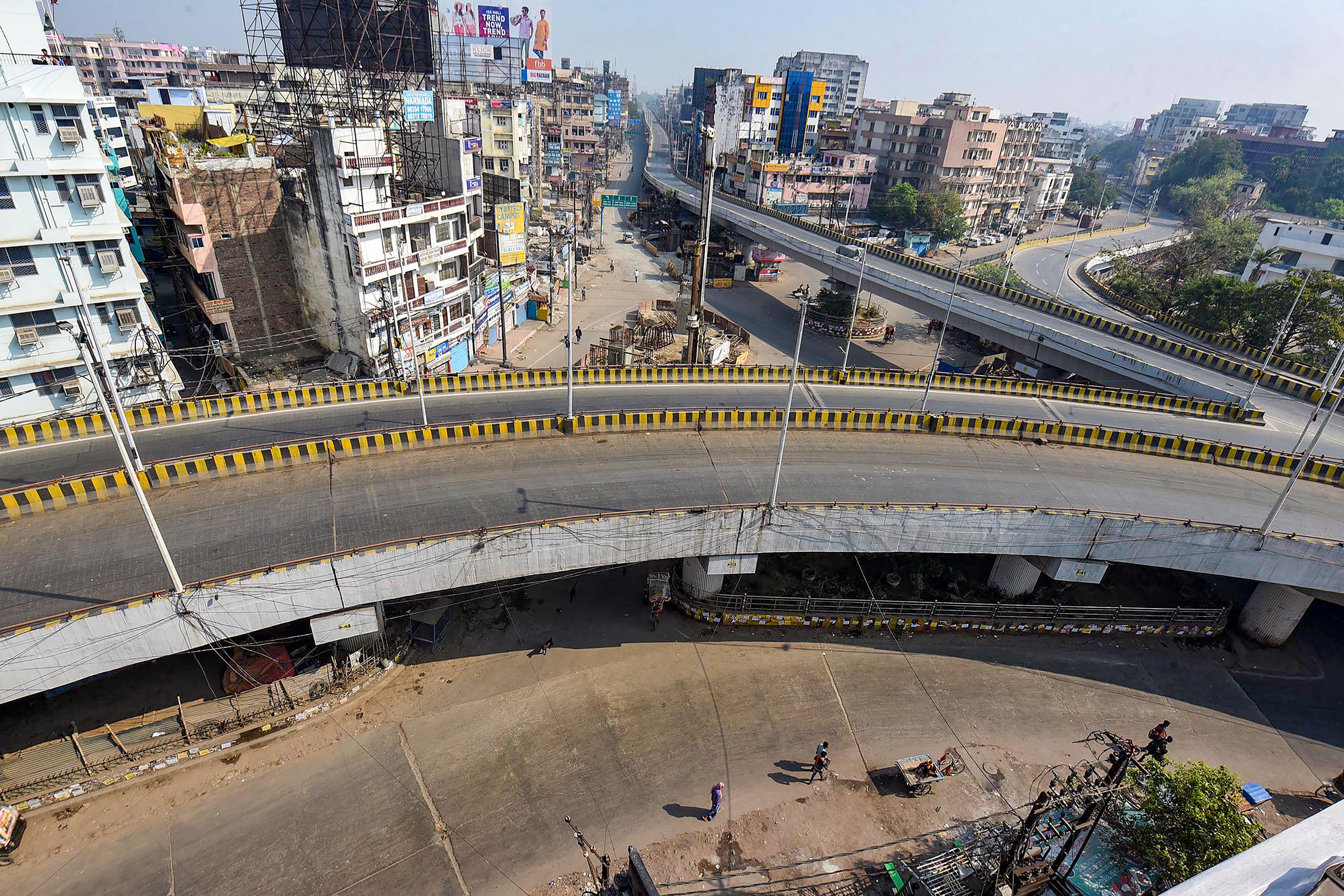 Shortly after the 14-hour nationwide self-imposed curfew got underway at 7 a.m., the government announced further measures to contain the spread of the virus. Only essential services will be allowed in 75 districts which have reported confirmed coronavirus cases, and passenger train services across the country have been suspended until March 31, according to a Press Information Bureau notification.
