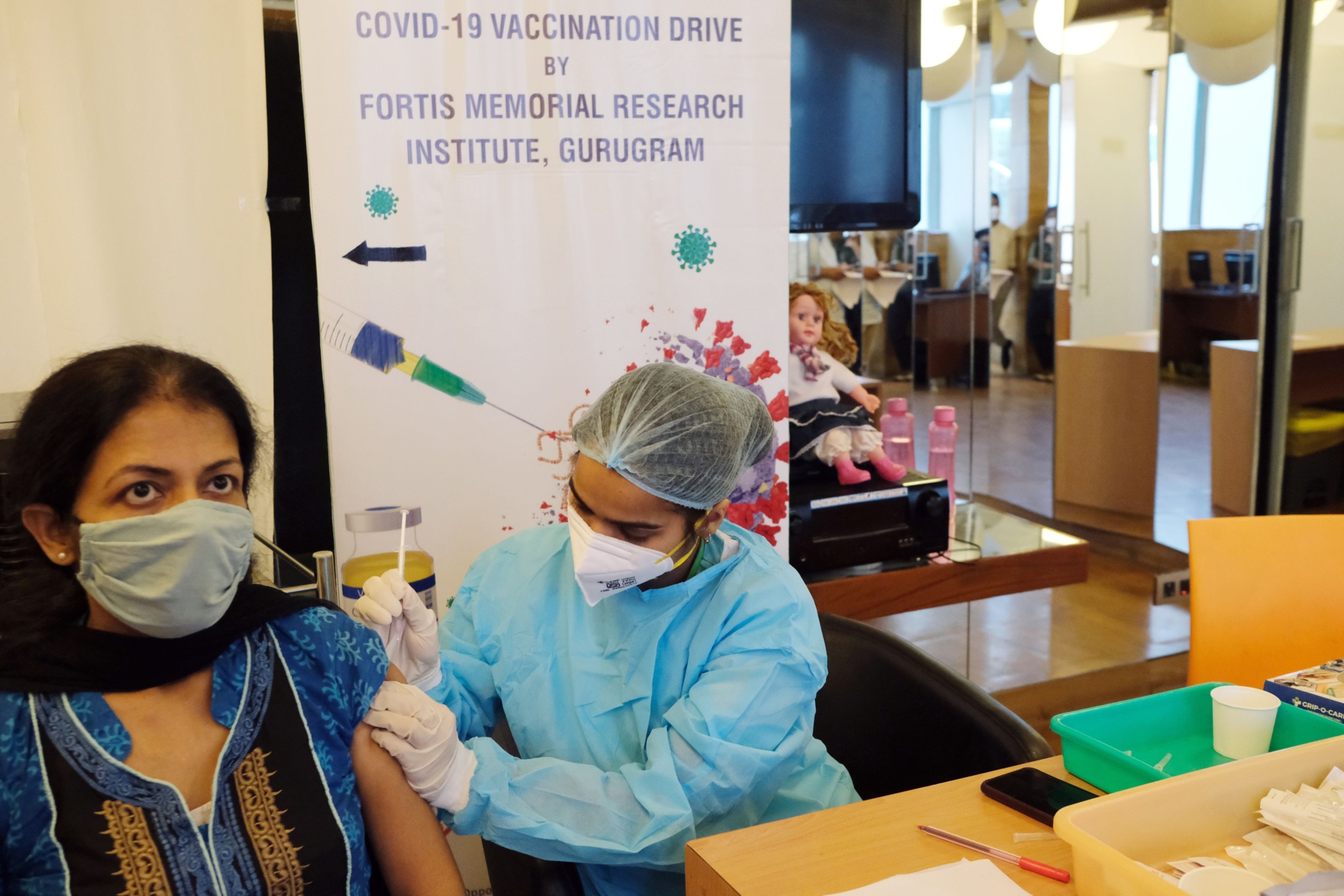 A nurse administers a second dose of the Sputnik V Covid-19 vaccine. (Photographer: T. Narayan/Bloomberg)