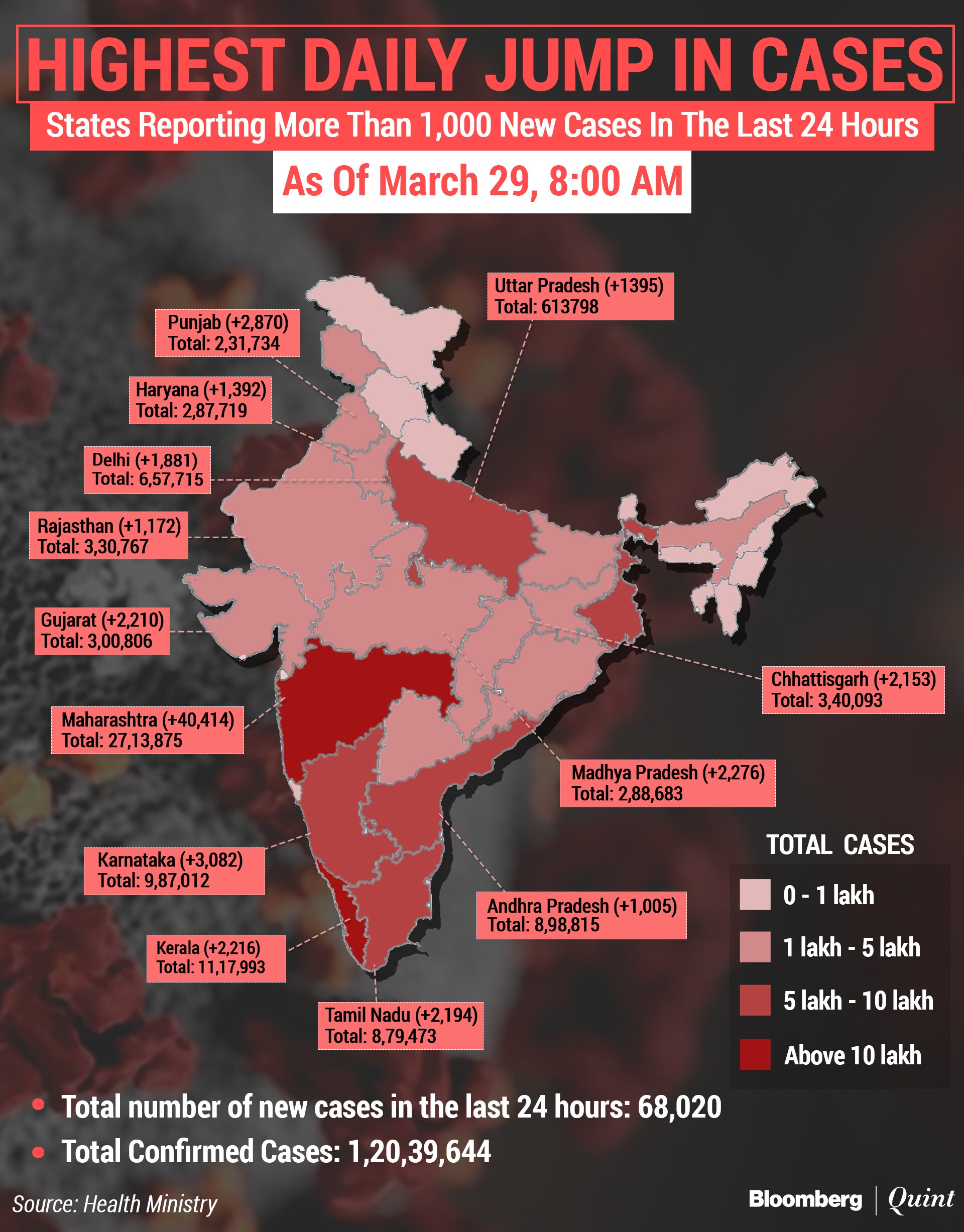 Globally, coronavirus cases passed 12.65 crore, while deaths exceeded 27 lakh, as of Sunday morning.