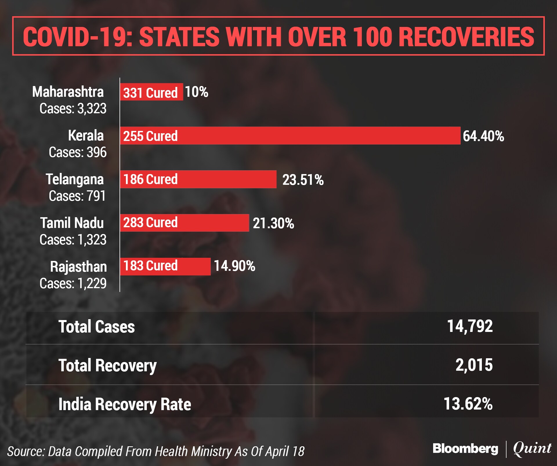India’s count of confirmed Covid-19 cases rose to 17,615 by Sunday night, according to the ICMR.