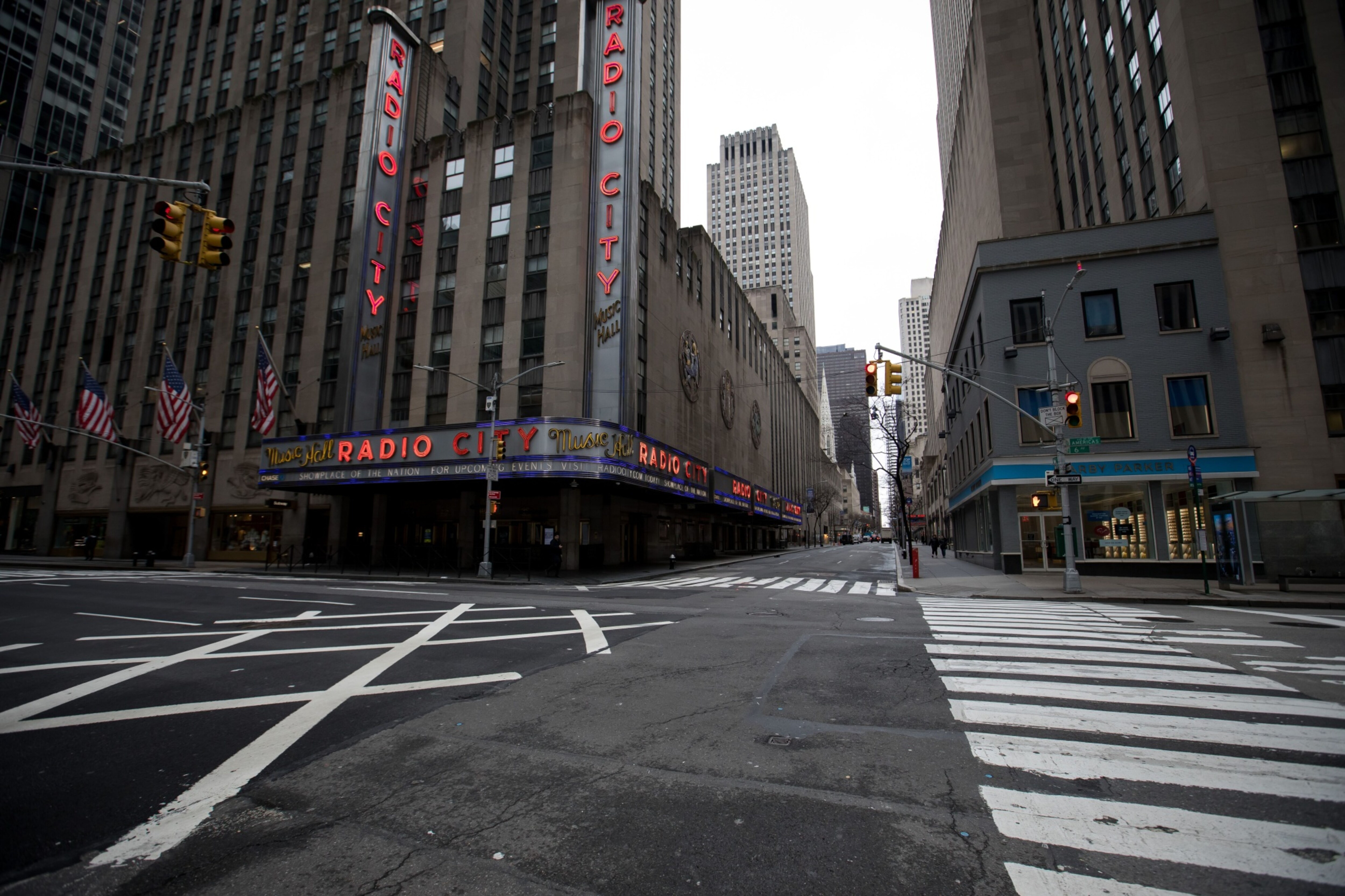 Empty streets and sidewalks in New York, on March 19, 2020. (Photographer: Michael Nagle/Bloomberg)