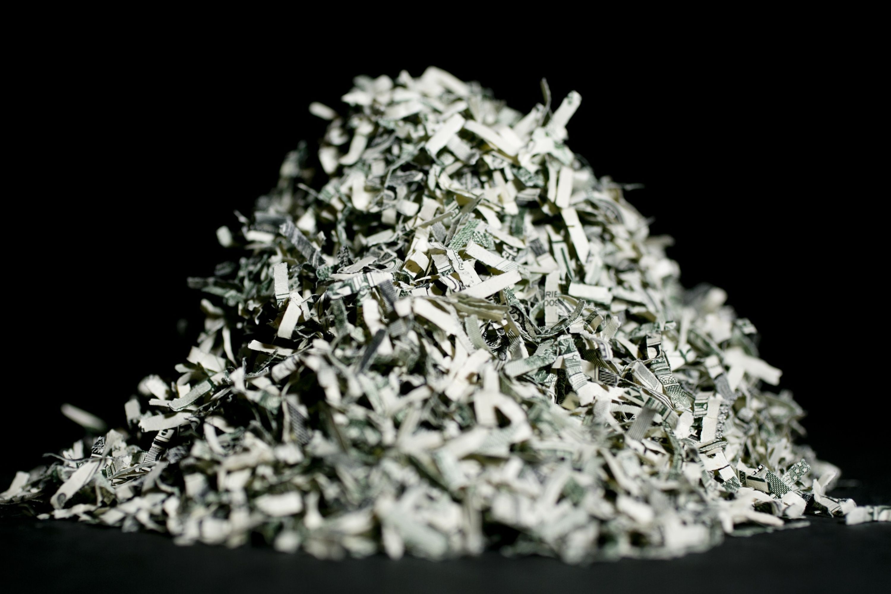 A pile of U.S. shredded currency valued at $150 is arranged for a photograph in Washington, D.C., U.S. Photographer: Andrew Harrer/Bloomberg