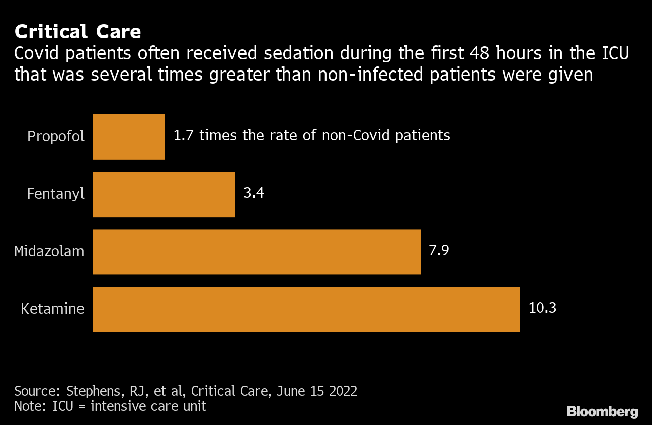 (Bloomberg) -- For weeks on end, Kellie McCarthy fought the ventilator pushing oxygen rhythmically into her Covid-inflamed lungs with such ferocity that she was given a slew of drugs to tolerate the invasive treatment.