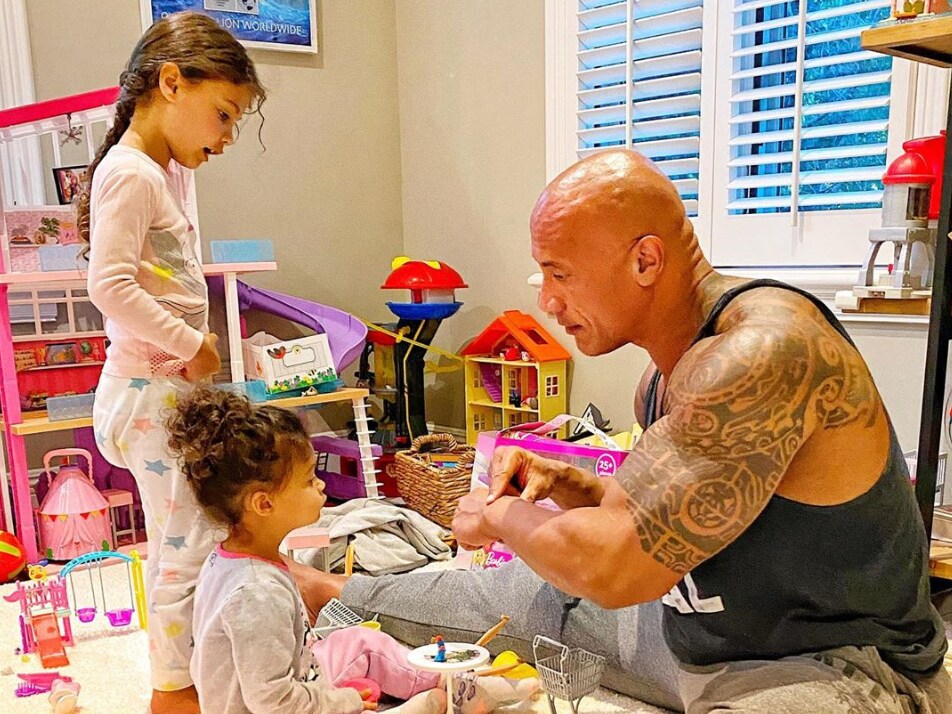 Dwayne Johnson and his daughters Jasmine and Tiana. (Photo: Dwayne Johnson/Instagram)