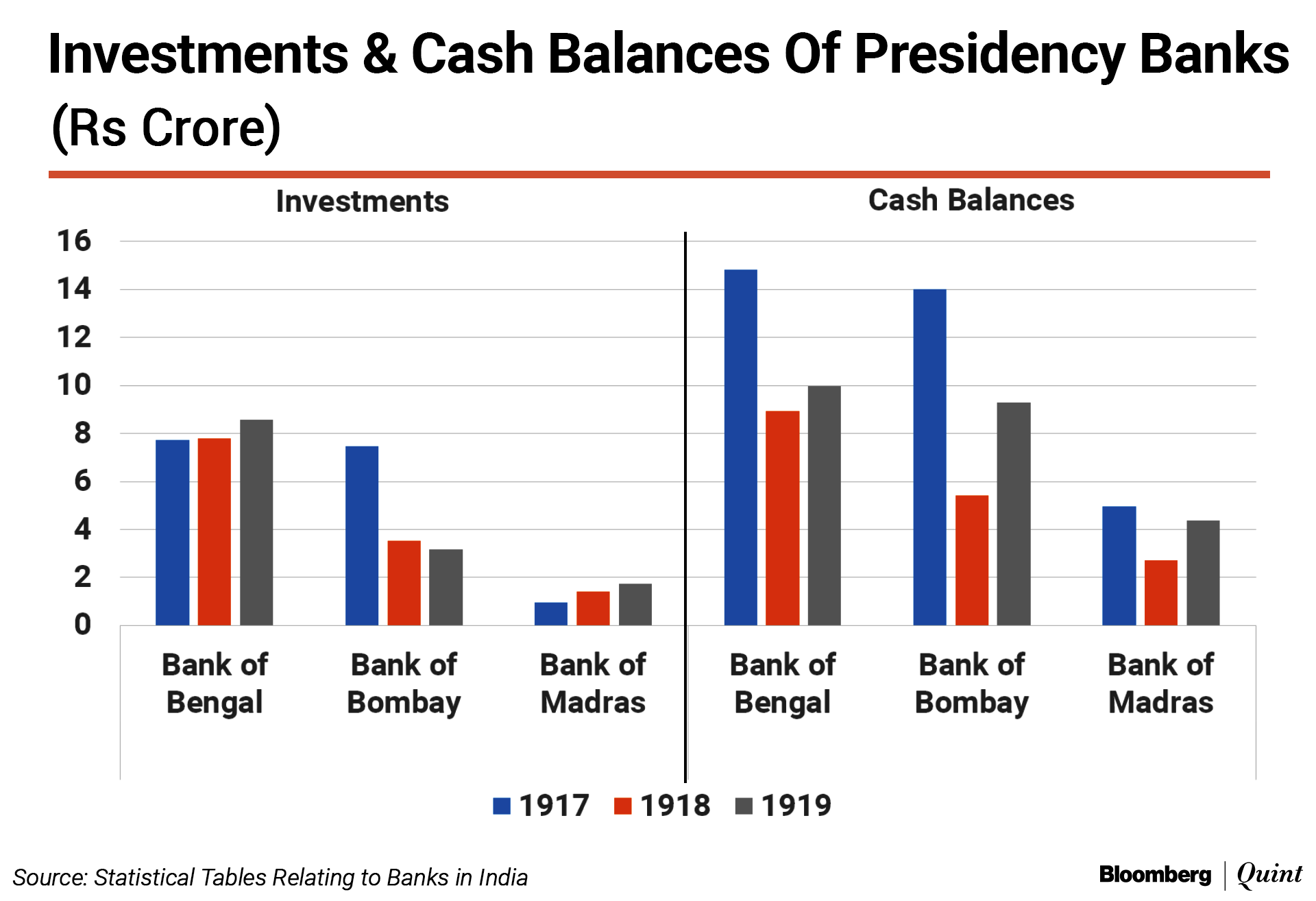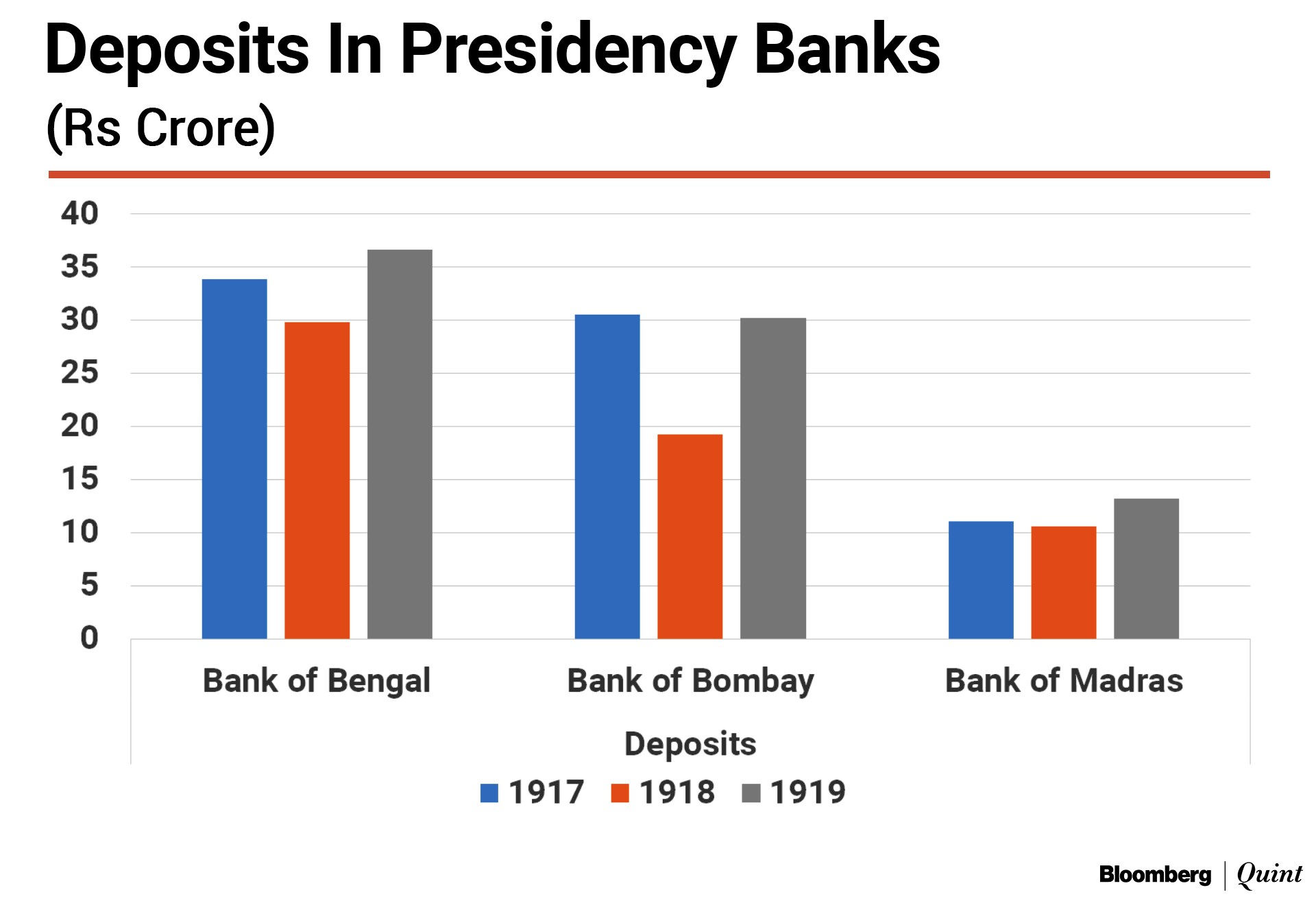 In 1918, deposits declined in all three Presidency banks but majorly in the Bank of Bombay whose deposits declined by 37% from Rs 30.5 crore to Rs 19 crore. The declines for the Presidency Banks of Bengal and Madras were 12% and 5% respectively. With deposits, Bank of Bombay saw a decline in both public and government deposits. The impact was short-lived, though, as these banks quickly recovered ,in 1919.