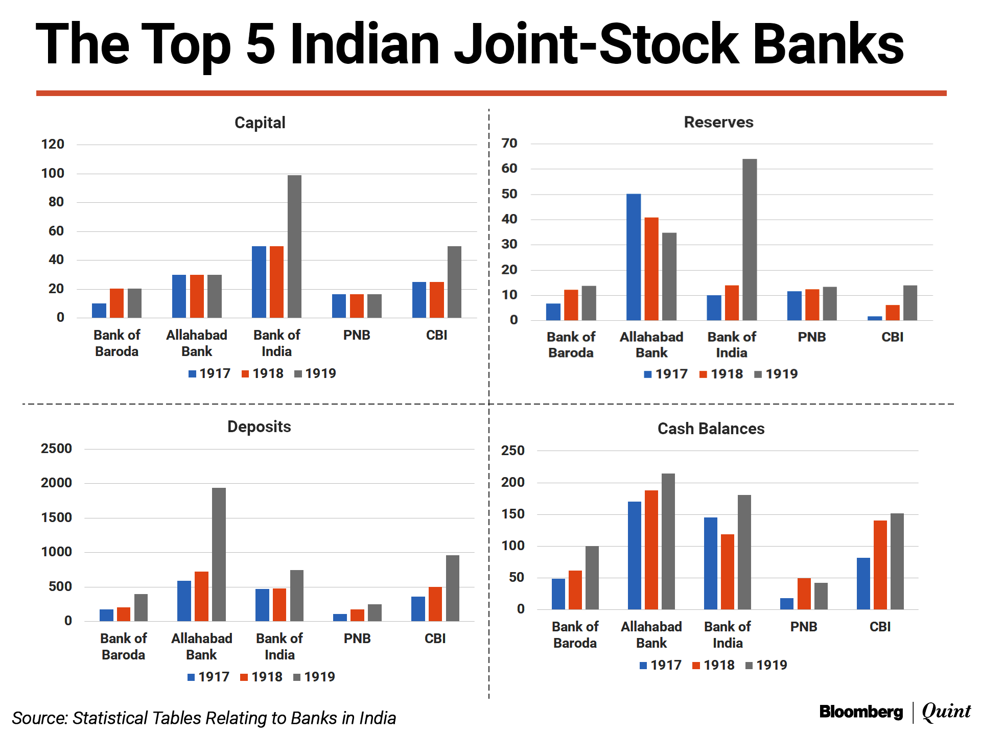 Deposits and cash balances rose in all the banks barring Punjab National Bank. The financials rose significantly as WWI came to an end. The period saw the two Bombay-based banks – Bank of India and Central Bank of India making rapid strides to emerge as top banks in the country.