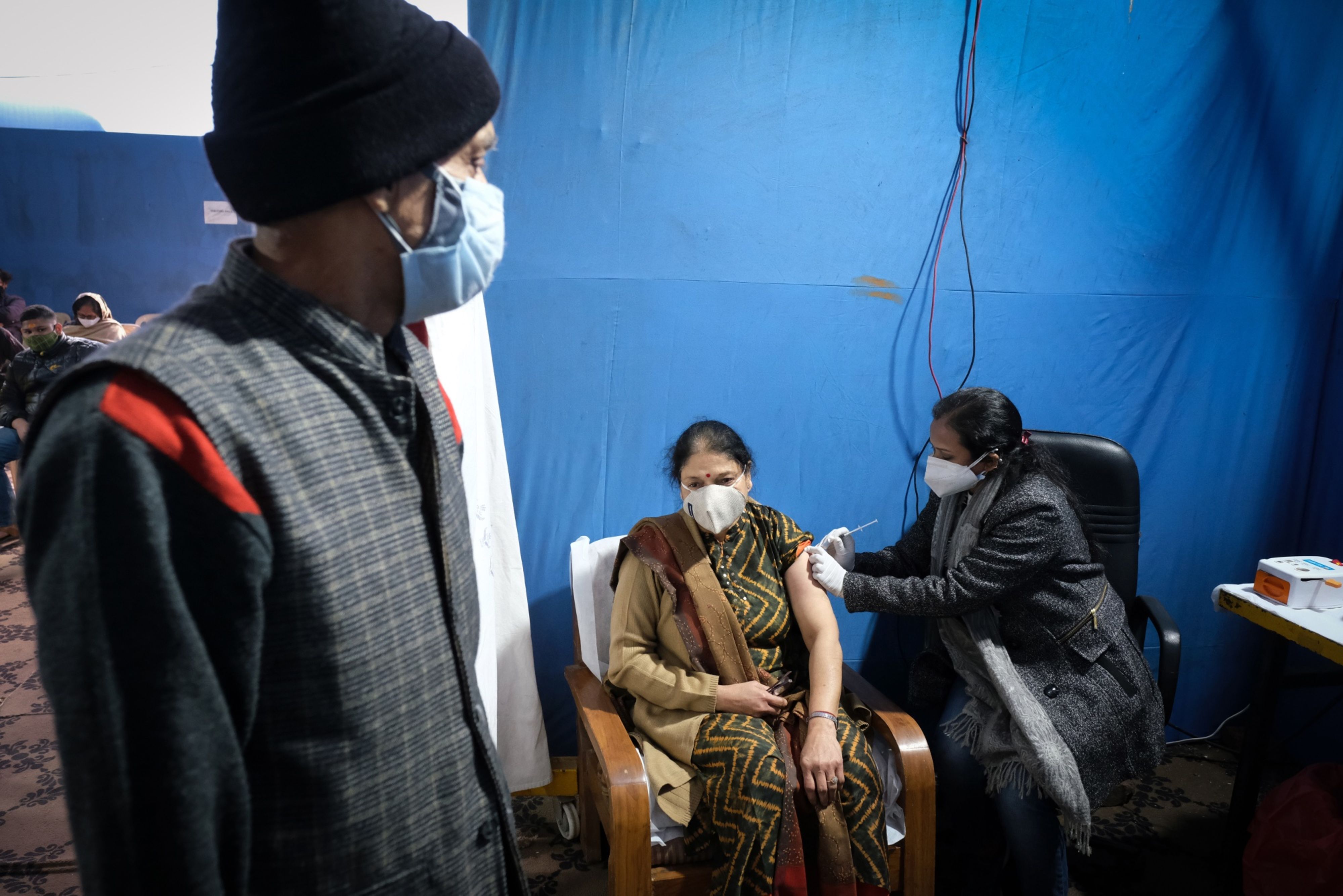 A member of the public receives a Covaxin Covid-19 vaccine booster shot in New Delhi. (Photographer: T. Narayan/Bloomberg)