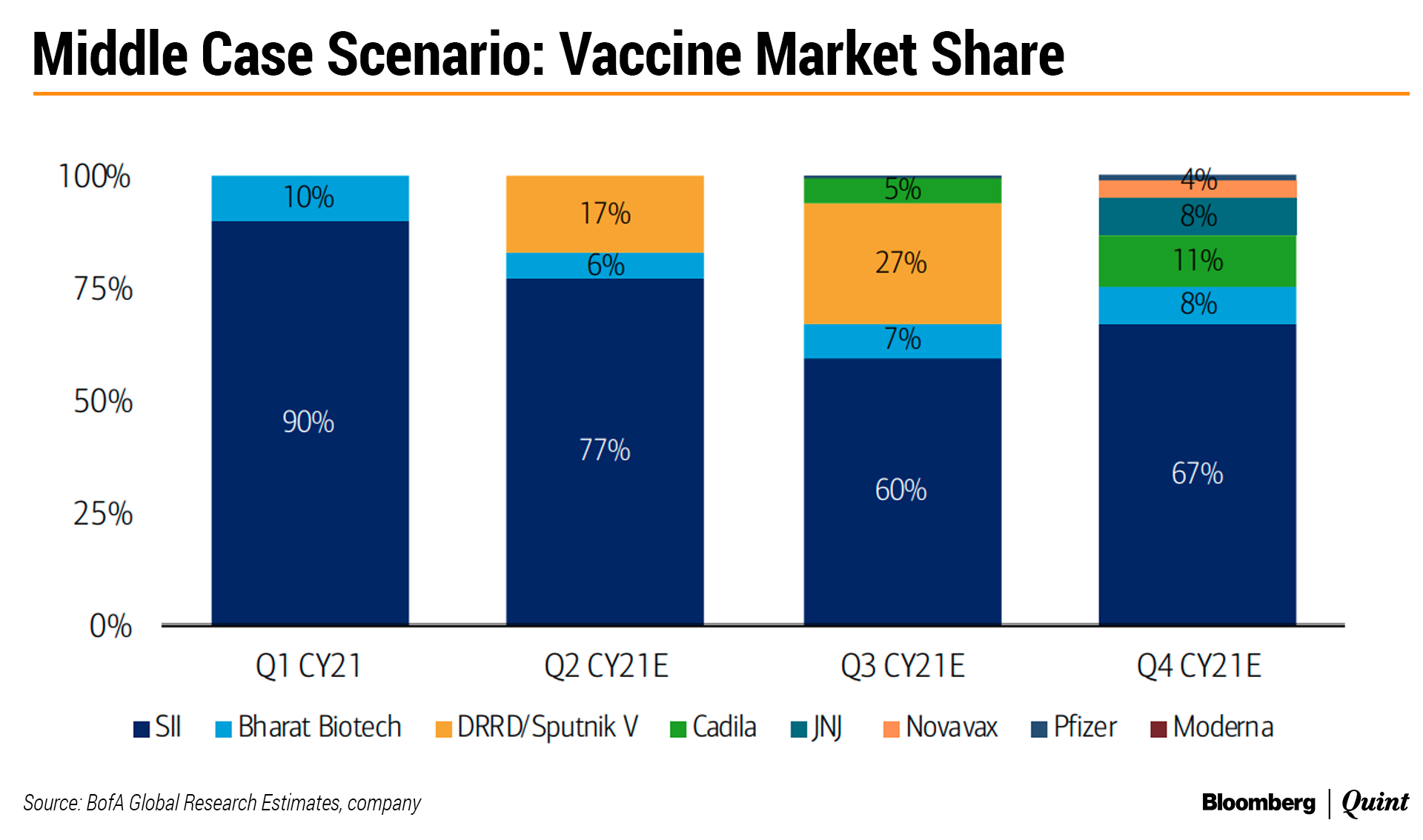 “On overall net basis, we forecast 34%, 40% and 48% of population getting vaccinated by 2021 in bear, middle and bull scenarios respectively,” said a BofA Securities report.With more buyers entering the fray, it's possible supply will rise faster than earlier anticipated. Between states and corporates if urban, dense areas can get speedy, comprehensive vaccine coverage that may retard the virus spread as well.