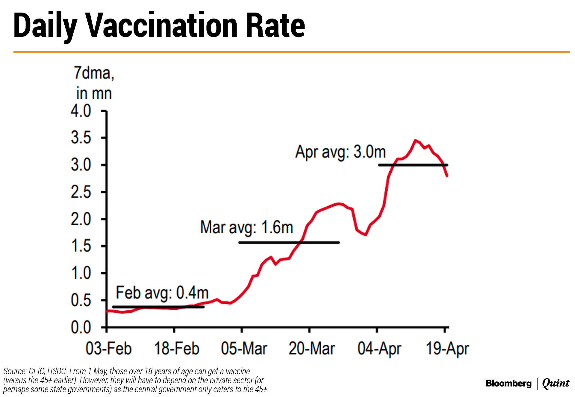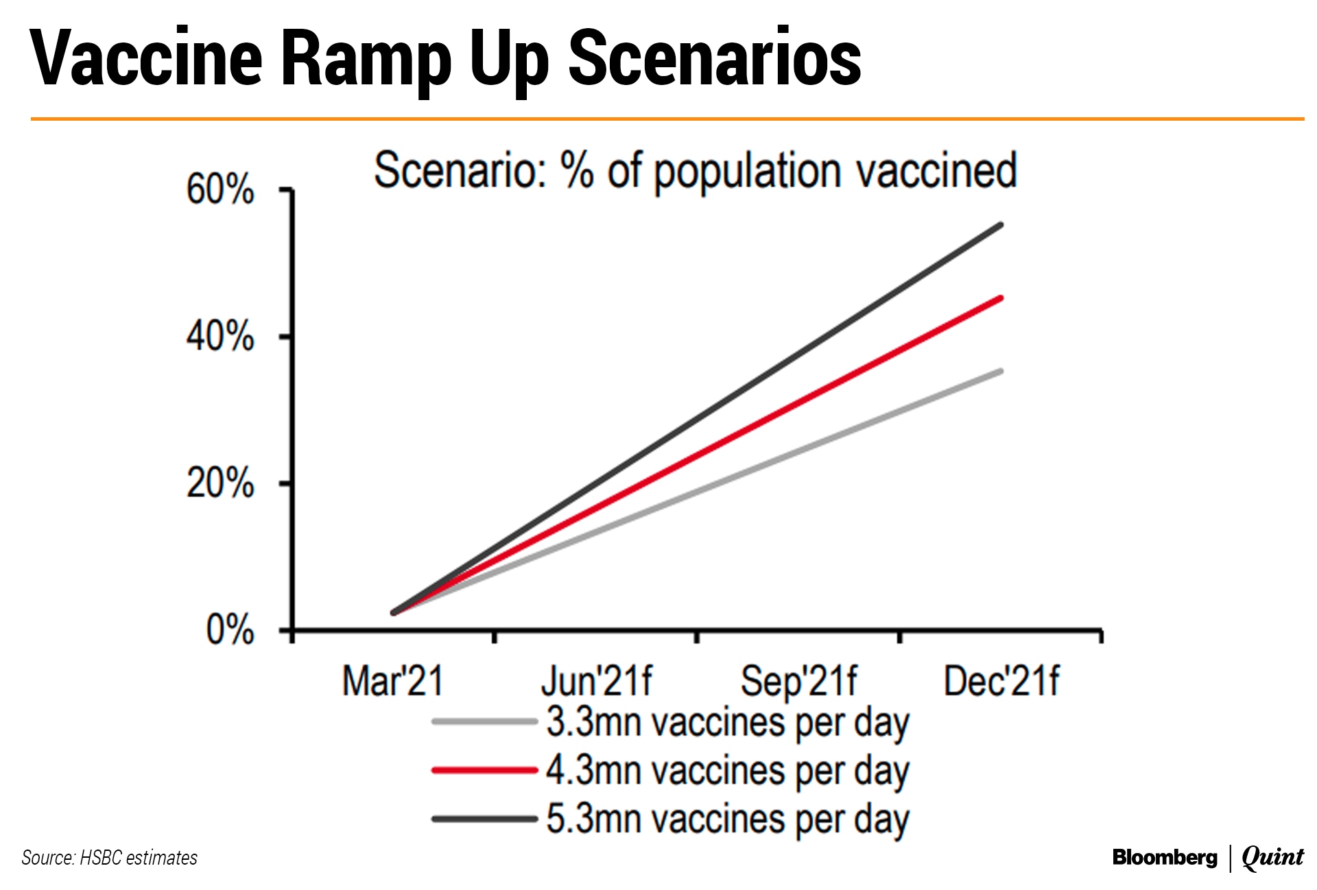 If India is able to ramp up from the current 25-30 lakh vaccine shots a day to 50 lakh a day, 50% of the population could be vaccinated by the end of the calendar year, estimates HSBC.