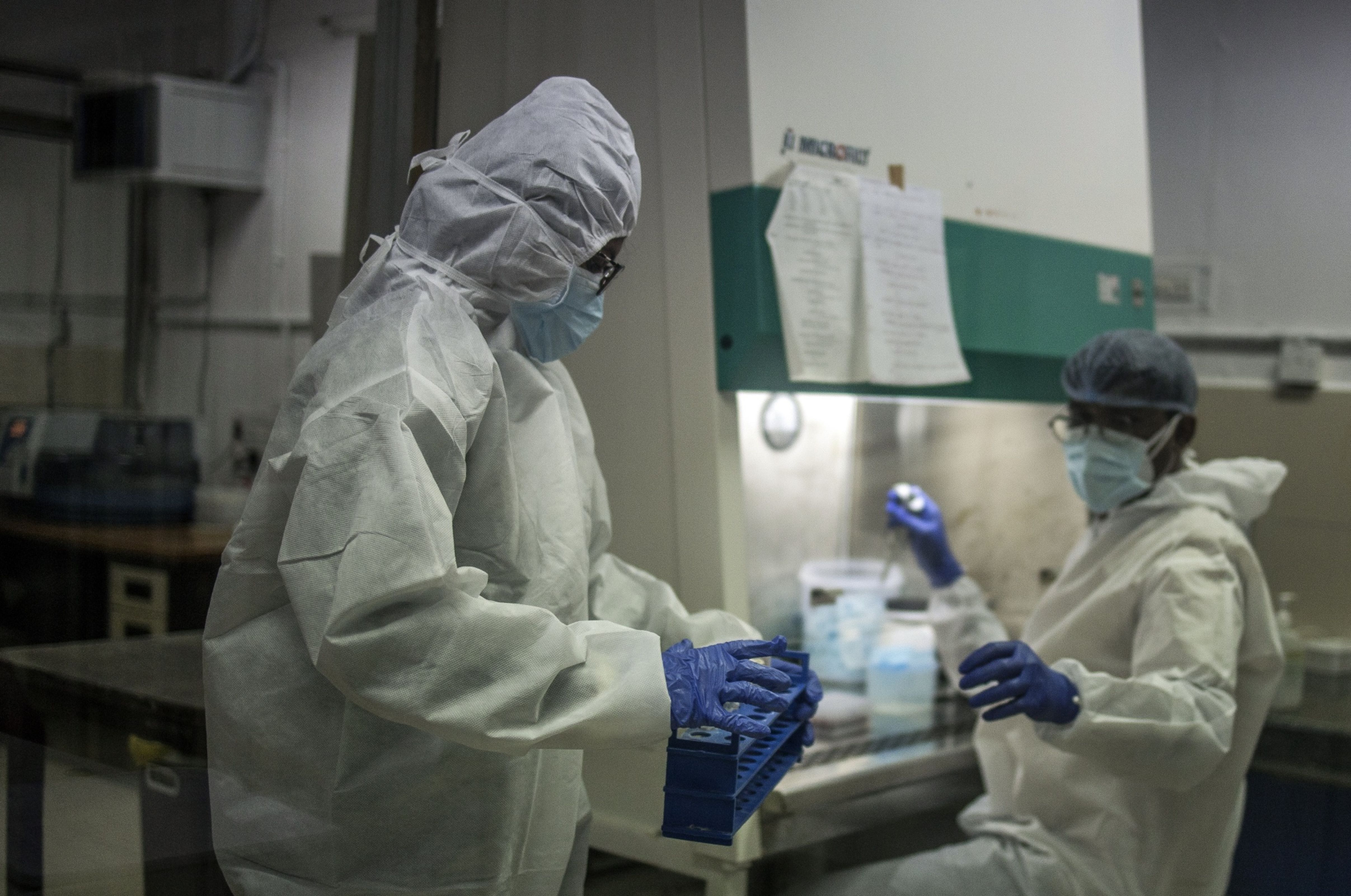 Technicians extract RNA from Covid-19 samples at the Covid-19 Molecular Diagnostic Laboratory at the Sant Gadge Baba Amravati University. Photographer: Anindito Mukherjee/Bloomberg