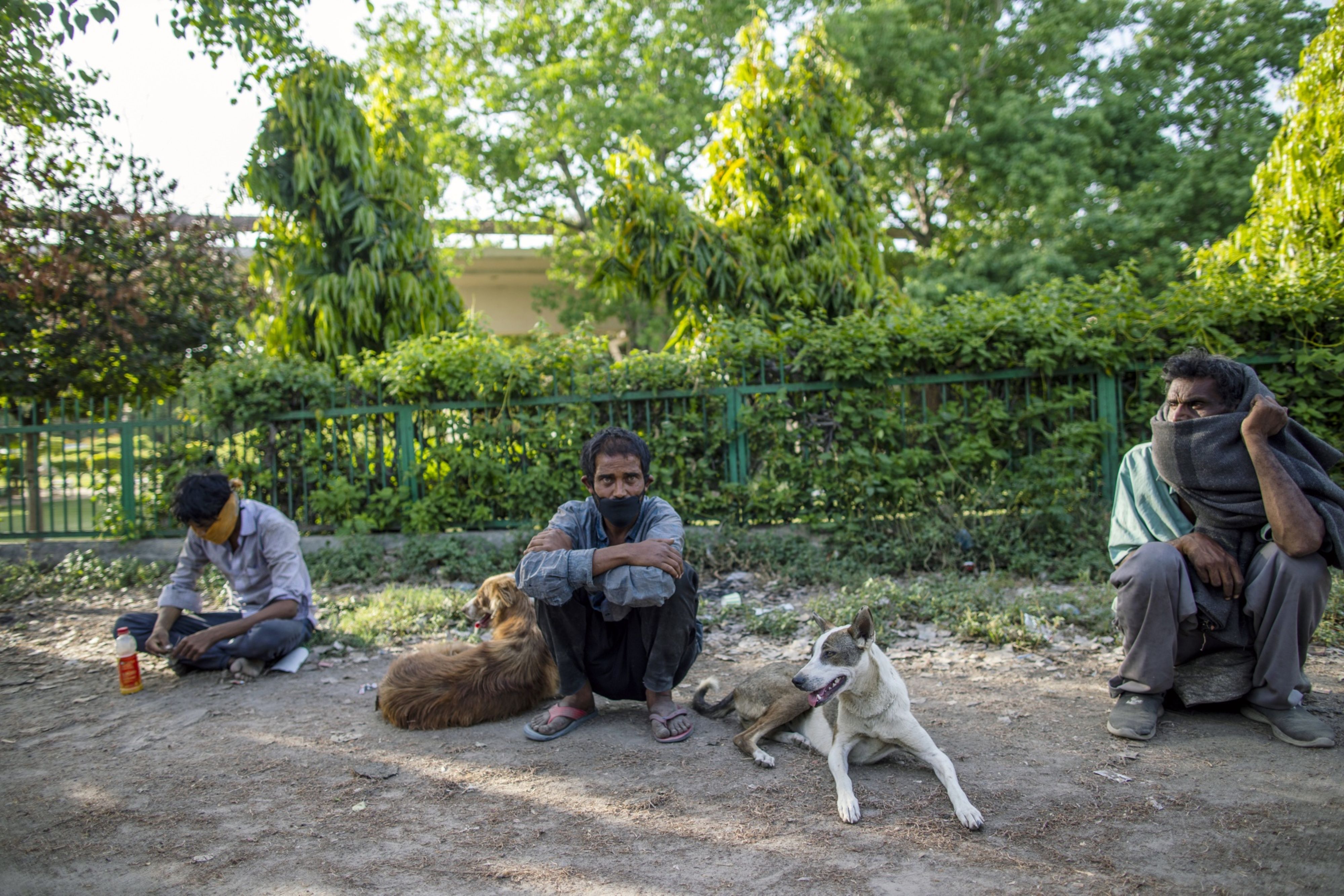 People wait to be transferred to a shelter during a lockdown imposed due to coronavirus. (Photographer: Prashanth Vishwanathan/Bloomberg)