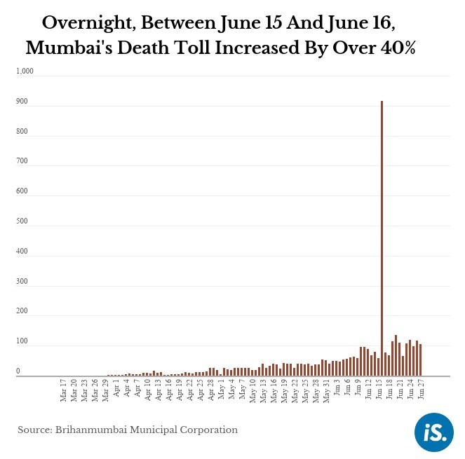 On the night of June 15, the Brihanmumbai Municipal Corporation issued its usual Covid-19 evening bulletin and tweet for Mumbai, then the Indian city with the most Covid-19 cases. The city's Covid-19 death toll was 2,248, including the 58 new deaths, it announced. By the next morning, the numbers had jumped by about 40%—on June 16, the BMC's evening bulletin announced 3,165 deaths, including 862 older but previously unreported deaths.