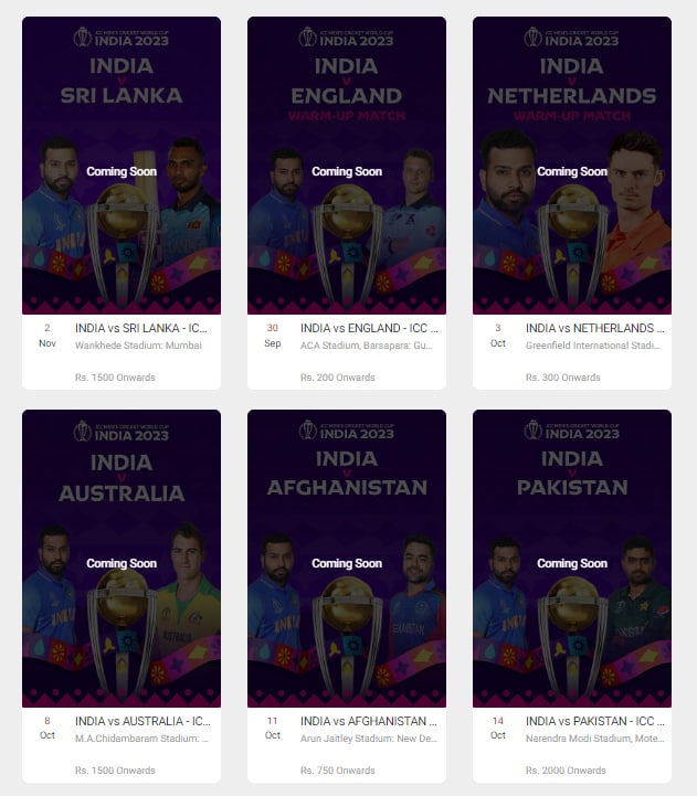 Click on the link to book your tickets 🔽… pic.twitter.com/a56jWGVY31Few hours earlier, a 'Coming Soon' message was shown across all India matches on the BookMyShow platform.