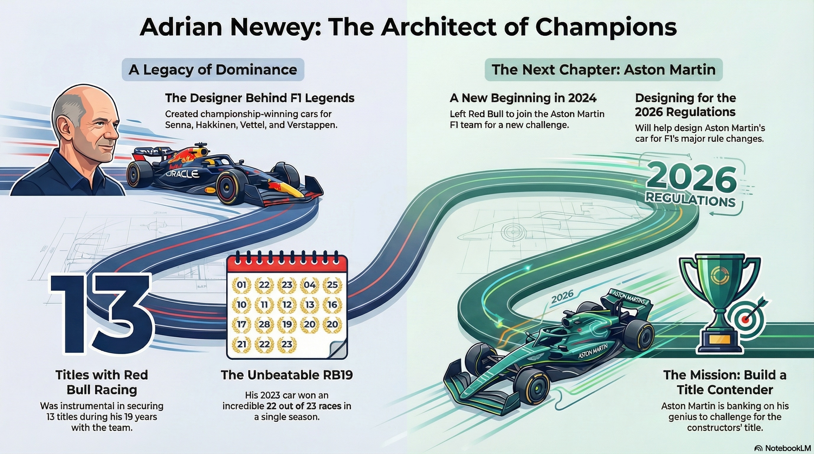 From Red Bull to Aston Martin, can Newey deliver again? (Photo generated by Notebook LM)
